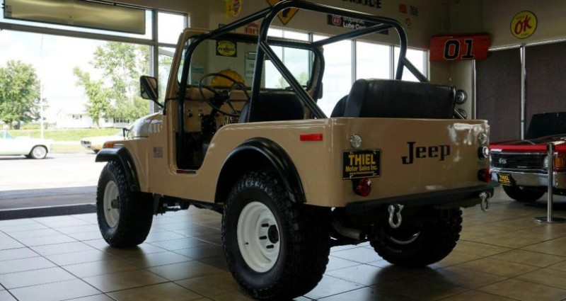 - Année : 1974 - Modèle : Jeep CJ5 - Couleur extérieure : Tan - Couleur intérieure : Noir - Type de carrosserie : 4X4 - Boîte de vitesses : Manuelle - Moteur : 6 cylindres en ligne - Type d'essence : Essence - Kilométrage : 1 516 miles - Travaux : Restauration complète de la structure (Frame-off restored). Provenance : Iowa. Disponibilité : environ 7 semaines, clés en main. 29 000 € tout compris (importation, taxes, procédure d'immatriculation). Annonce publiée le 12/12/2025