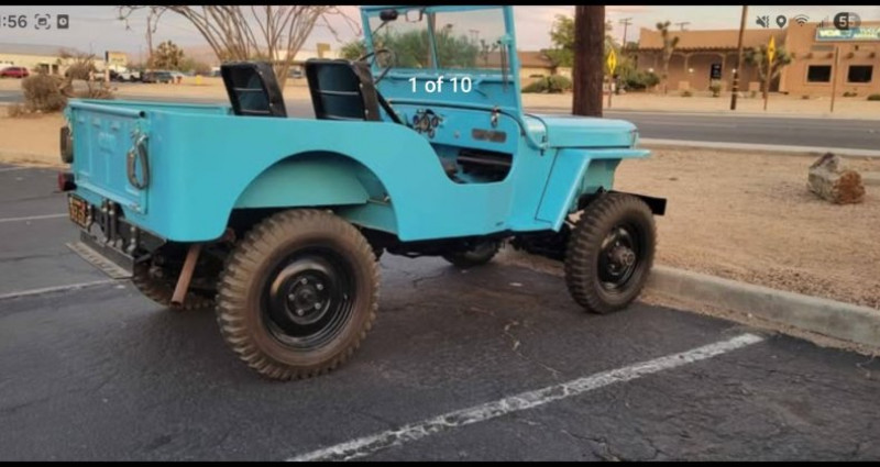 - Marque : Willys - Modèle : CJ-2A - Couleur : Non spécifié - État : 95% original - Travaux : Restoration complète (frame off) - Moteur : Moteur récemment reconstruit - État du moteur : Marche bien - Ruste : Pas de ruste - Kilométrage : Non spécifié - Prix : 16 500 $ (dollars américains). Provenance : California. Disponibilité : environ 7 semaines, clés en main. 23 000 € tout compris (importation, taxes, procédure d'immatriculation). Annonce publiée le 25/12/2025