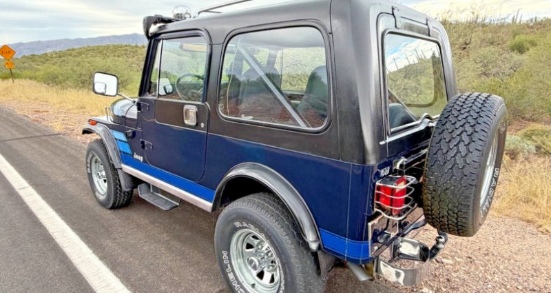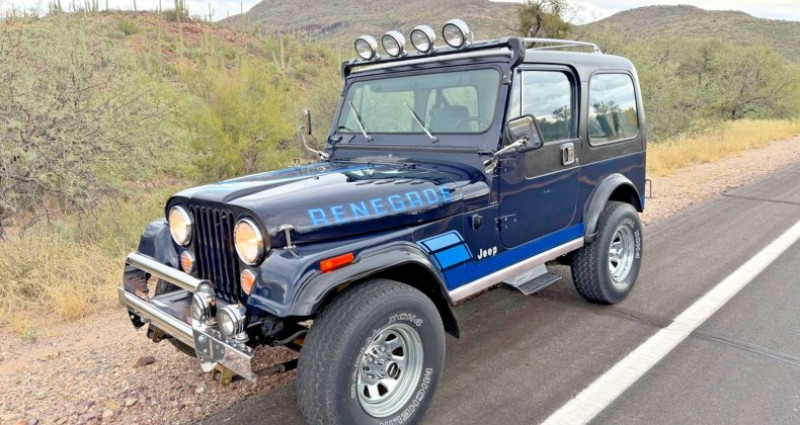- Couleur : Bleu profond Deep Night Blue (code 2D) - Moteur : AMC 258 6-cylindres, transmission manuelle T4 - Boîte de vitesses : Dana 300 transfer case avec mise à jour Currie Twin Stick - Arbre de transmission arrière : AMC 20 - Arbre de transmission avant : Dana 300 - Équipements : PS, PB, tachymètre après-marché sur colonne de direction, antenne CB (sans radio) - Kilométrage : 118 000 miles - État : Rust free, solides planchers, cadre noir en très bon état, conduit très bien - Travaux : Peinture de capot remplacée en raison d'un impact avec une échelle - Travaux réversibles : Accents chromés autour des feux arrière, traverses d'air, etc. (facilement removables si vous souhaitez revenir à l'état original). Provenance : Arizona. Disponibilité : environ 7 semaines, clés en main. 33 000 € tout compris (importation, taxes, procédure d'immatriculation). Annonce publiée le 26/12/2025