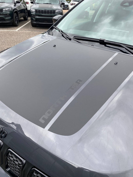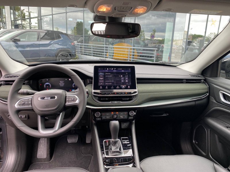 Allumage des feux automatique (capteur de luminosité) / Barres de toit longitudinales / Caméra de recul Parkview avec affichage dynamique / Coloris métallisé Techno Green avec toit Noir / Combiné d'instrumentation numérique configurable àécran TFT de 10,25" / Feux LED avec signature spécifique / Freinage autonome d'urgence avec détection piétons et cyclistes / Frein de stationnement électrique avec aide au démarrage en côte / Jantes en alliage 18'' North Star 235/50/18 / Pack Stationement Aide au stationnement AV et AR, Park Assist : Assistance au stationnement parallèle/perpendiculaire semi-automatique avec assistance à la sortie / Prises USB type A et C / Projecteurs AR à Signature LED / Rétroviseur intérieur photochromique / Sellerie mixte tissu/TEP noir/vert lavable North Star / Services connectés Uconnect Services / Siège conducteur et passager à réglage manuel 6 positions / Siège conducteur réglage lombaire électrique / Siège passager rabattable à plat / Smartbeam : commutation automatique feux de route/feux de croisement / Sticker de capot noir North Star / Système anticollision actif / Système anti-louvoiement en conditions de tractage / Système Audio "Uconnect" 6 HP / Système d'avertissement de franchissement de ligne avec correction / Système d'ouverture et de démarrage sans clé Enter-N-Go / Système préventif anti retournement / Tapis de sol North Star / Toit noir / Toit ouvrant panoramique CommandView