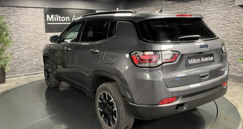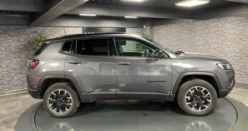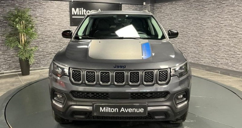 ======= OPTIONS ======= Câble type 2 mode 3 : recharge publique Pack Premium Peinture métallisée Graphite Gray ======= EQUIPEMENTS DE SERIE ======= Accoudoir central arrière avec porte-gobelet Affichage de la pression des pneumatiques Aide au démarrage en côte Aide au stationnement avant Airbags frontaux (passager neutralisable), latéraux et rideaux Alarme périmétrique Badges Trail Rated Banquette arrière avec dossiers rabattables à plat 60 40 Barres de toit longitudinales Câble type 2 mode 2 : recharge domestique Caméra de recul Parkview avec affichage dynamique Chargeur sans fil pour Smartphone Climatisation automatique bi-zone, avec aérateurs à l'arrière Combiné d'instrumentation numérique configurable à écran TFT de 10,25 Commandes audio au volant Commutation automatique des feux de croisement et de route, Light Assist Connexions Apple CarPlay et Android Auto Crochets de remorquage Détecteur de fatigue Détecteur de luminosité Enter-N-Go : système d'ouverture et de démarrage sans clé Essuie glace arrière Essuie-glace à déclenchement automatique Feux arrière à signature LED Frein de stationnement électrique Freinage automatique d'urgence avec détection piétons et cyclistes Jantes alliage 17'' Trailrated Hiver Pneumatiques M+S avec flocon Jeep Wave Limiteur de vitesse intelligent Navigation GPS avec informations sur les panneaux de signalisation Phares LED avec signature spécifique Plaques de protection (suspension avant, réservoir, transmission, boîte de transfert) Prise 12V à l'arrière Prise 12V dans le coffre Prise USB type A et C Projecteurs antibrouillard à LED Radar de recul Park Sense Réglage manuel de sièges avant 6 positions Régulateur de vitesse adaptatif Rétroviseur intérieur électrochrome Rétroviseurs extérieurs électriques, dégivrants et rabattables électriquement Roue de secours (215 65R17, usage temporaire) Sellerie mixte tissu TEP avec surpiqures rouges Services connectés Uconnect Services Services Uconnect avec fonctionnalités hybrides rechargeables dédiées Siège conducteur à réglage lombaire électrique Siège passager rabattable à plat Sticker de capot Trailhawk Suspensions tout-terrain Système anti-louvoiement en conditions de tractage Système audio Uconnect: 6 haut-parleurs DAB (Digital Audio Broadcasting) Bluetooth Système d'avertissement anticollision actif Système d'avertissement de franchissement de ligne avec correction Système d'infodivertissement à écran tactile 101 Système de reconnaissance des panneaux de signalisation Système préventif anti-retournement (ERM) Tapis de coffre réversible Tapis de sol en caoutchouc Transmission intégrale eAWD avec Selec-Terrain et mode Rochers Vitres latérales et lunette arrière surteintées Nb. Vitesses : 6 Conso Mixte : l/100