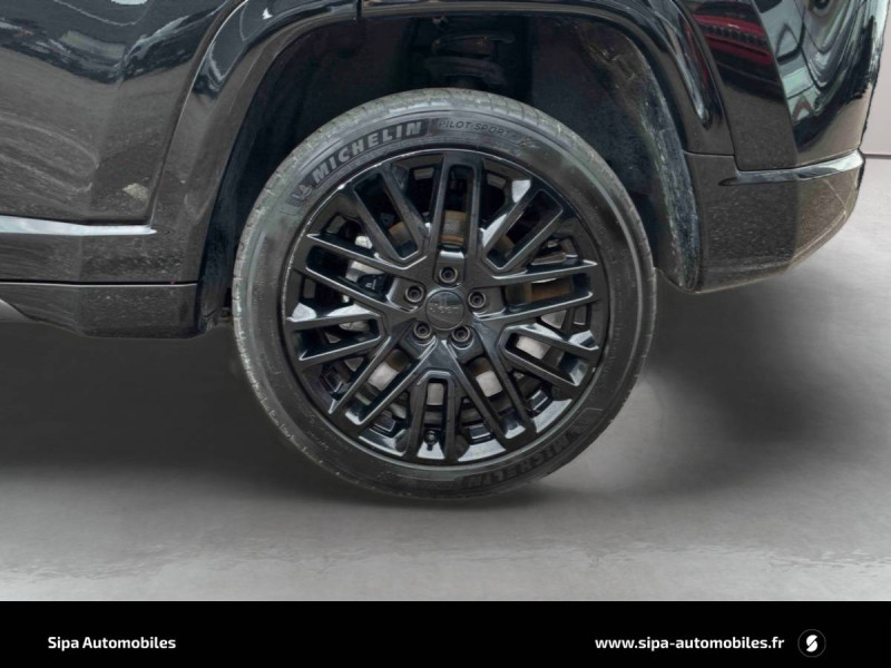 Aide au stationnement AR "Park Sense" / Airbags frontaux, latéraux de type rideau avec airbag passager neutralisable / Alarme périmétrique / Allumage des feux automatique (capteur de luminosité) / Barres de toit longitudinales / Bas de caisse Gloss Black / Câble type 2 mode 2 - recharge domestique (8 A / 1,8 kW) / Caméra de recul Parkview avec affichage dynamique / Capteur de luminosité (allumage des feux automatique) / Chargeur sans-fil pour smartphone / Combiné d'instrumentation numérique configurable àécran TFT de 10,25" / Enter-N-Go : système d'ouverture et de démarrage sans clé / Feux LED avec signature spécifique / Freinage autonome d'urgence avec détection piétons et cyclistes / Frein de stationnement électrique avec aide au démarrage en côte / Jantes en alliage Gloss Black 19" 235/45 R19 Pneumatiques 3 saisons / Jeep Wave - programme de fidelité premium avec 2 ans d'entretien / Modes EV : Hybride, Électrique, eSave / Navigation GPS avec informations sur les panneaux de signalisation / Prise 12V à l'AR et dans le coffre / Prises USB type A et C / Projecteurs AR à Signature LED / Rétroviseur intérieur photochromique / Services connectés Uconnect Services / Siège conducteur et passager à réglage manuel 6 positions / Siège conducteur réglage lombaire électrique / Siège passager rabattable à plat / Smartbeam : Commutation feux de route / feux de croisement automatique / Système anticollision actif / Système anti-louvoiement en conditions de tractage / Système d'avertissement de franchissement de ligne avec correction / Système d'infodivertissement "UConnect 5" àécran tactile 10,1" / Système préventif anti retournement (ERM) / Tapis de sol / Toit noir / Transmission intégrale eAWD avec Selec-Terrain et mode Sport / Uconnect Services avec fonctionnalités hybrides rechargeables dédiées