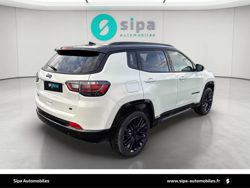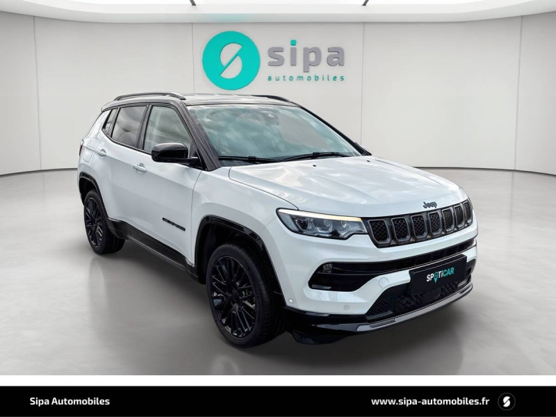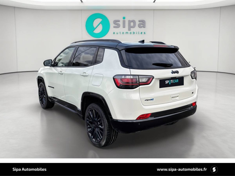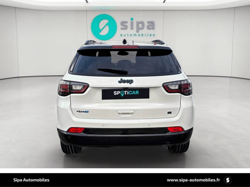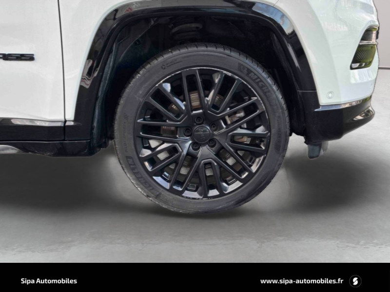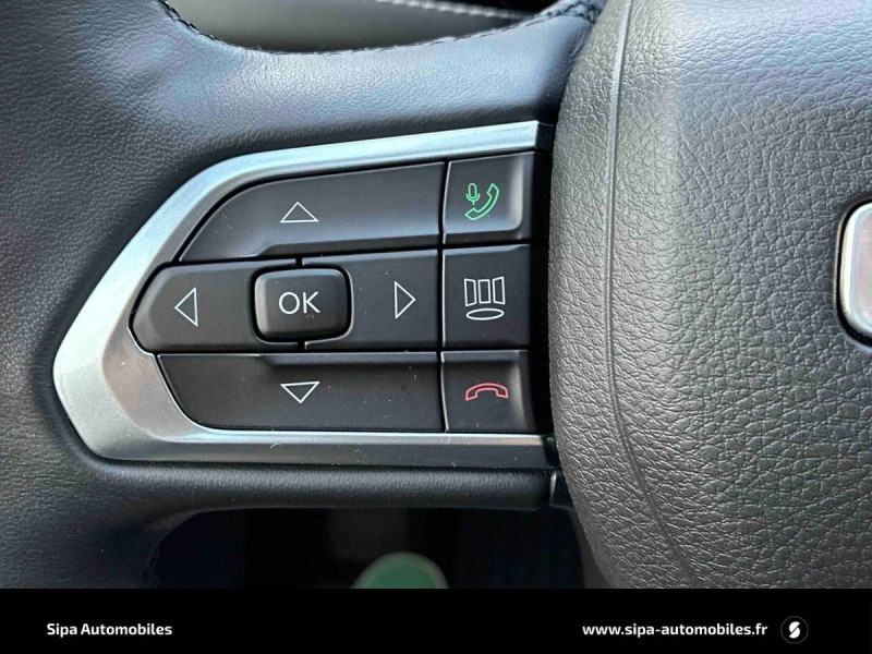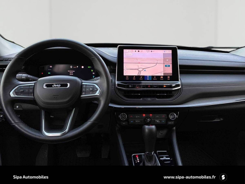 Aide au stationnement AR "Park Sense" / Airbags frontaux, latéraux de type rideau avec airbag passager neutralisable / Alarme périmétrique / Allumage des feux automatique (capteur de luminosité) / Barres de toit longitudinales / Bas de caisse Gloss Black / Câble type 2 mode 2 - recharge domestique (8 A / 1,8 kW) / Caméra de recul Parkview avec affichage dynamique / Chargeur sans-fil pour smartphone / Combiné d'instrumentation numérique configurable àécran TFT de 10,25" / Enter-N-Go : système d'ouverture et de démarrage sans clé / Feux LED avec signature spécifique / Freinage autonome d'urgence avec détection piétons et cyclistes / Frein de stationnement électrique avec aide au démarrage en côte / Jantes en alliage Gloss Black 19" 235/45 R19 Pneumatiques 3 saisons / Jeep Wave - programme de fidelité premium avec 2 ans d'entretien / Navigation GPS avec informations sur les panneaux de signalisation / Prise 12V à l'AR et dans le coffre / Prises USB type A et C / Projecteurs AR à Signature LED / Rétroviseur intérieur photochromique / Services connectés Uconnect Services / Siège conducteur et passager à réglage manuel 6 positions / Siège conducteur réglage lombaire électrique / Siège passager rabattable à plat / Smartbeam : Commutation feux de route / feux de croisement automatique / Système anticollision actif / Système anti-louvoiement en conditions de tractage / Système d'avertissement de franchissement de ligne avec correction / Système d'infodivertissement "UConnect 5" àécran tactile 10,1" / Système préventif anti retournement (ERM) / Tapis de sol / Toit noir / Transmission intégrale eAWD avec Selec-Terrain avec modes Auto, Sable/Boue, Neige, Sport