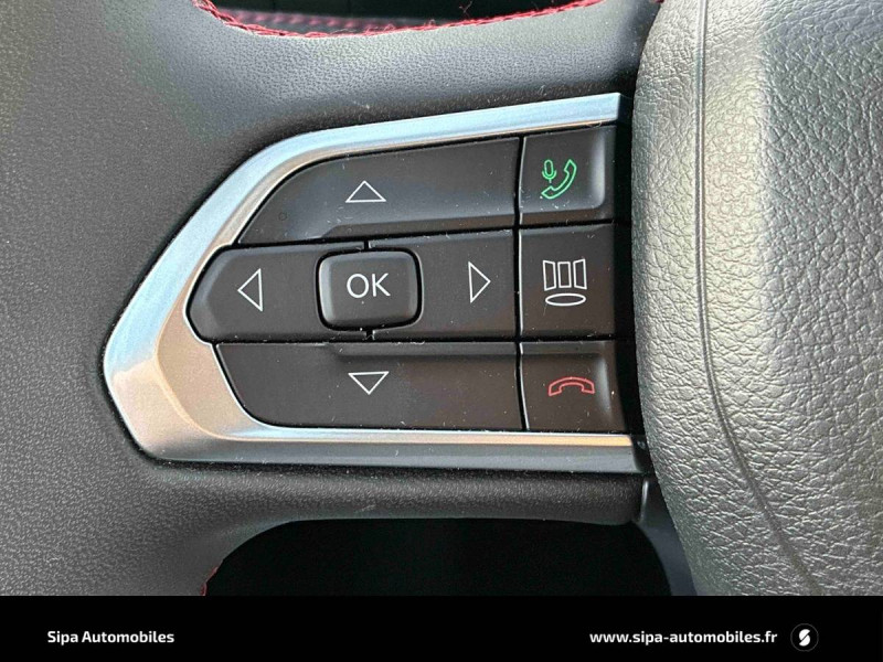 Aide au stationnement AR "Park Sense" / Aide au stationnement AV "Park Sense" / Alarme périmétrique / Allumage des feux automatique (capteur de luminosité) / Badges Trail Rated / Barres de toit longitudinales / Câble type 2 mode 3 - recharge publique (32 A / 7,4 kW) / Caméra de recul Parkview avec affichage dynamique / Combiné d'instrumentation numérique configurable àécran TFT de 10,25" / Crochets de remorquage / Feux LED avec signature spécifique / Freinage autonome d'urgence avec détection piétons et cyclistes / Frein de stationnement électrique avec aide au démarrage en côte / Jantes alliage 17" Trailrated, Pneumatiques M+S (3PMSF), 235/60 R17 / Pare-choc AV off-road et garde au sol surelevée / Plaques de protection (suspension, réservoir, transmission) / Prise 12V dans le coffre / Prises USB type A et C / Projecteurs AR à Signature LED / Projecteurs Performance LED / Rétroviseur intérieur photochromique / Roue de secours taille normale (215/60 R17) usage temporaire / Services connectés Uconnect Services avec fonctionalite hybride rechargeable / Siège conducteur et passager à réglage manuel 6 positions / Siège conducteur réglage lombaire électrique / Siège passager rabattable à plat / Sièges AV électriques et ventilés (conducteur et passager) / Smartbeam : Commutation feux de route / feux de croisement automatique / Sticker de capot noir / Suspension tout-terrain / Système anticollision actif / Système anti-louvoiement en conditions de tractage / Système d'avertissement de franchissement de ligne avec correction / Système d'infodivertissement "UConnect 5" àécran tactile 10,1" / Système d'ouverture et de démarrage sans clé Enter-N-Go / Système préventif anti retournement / Tapis de coffre réversible / Tapis de sol / Toit noir / Transmission intégrale eAWD avec Selec-Terrain et mode Rochers