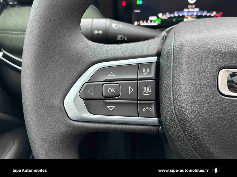 Allumage des feux automatique (capteur de luminosité) / Barres de toit longitudinales / Câble type 2 mode 3 - recharge publique (32 A / 7,4 kW) / Caméra de recul Parkview avec affichage dynamique / Coloris métallisé Techno Green avec toit Noir / Combiné d'instrumentation numérique configurable àécran TFT de 10,25" / Feux LED avec signature spécifique / Freinage autonome d'urgence avec détection piétons et cyclistes / Frein de stationnement électrique avec aide au démarrage en côte / Jantes en alliage 18'' North Star 235/50/18 / Pack Stationement Aide au stationnement AV et AR, Park Assist : Assistance au stationnement parallèle/perpendiculaire semi-automatique avec assistance à la sortie / Prises USB type A et C / Projecteurs AR à Signature LED / Rétroviseur intérieur photochromique / Sellerie mixte tissu/TEP noir/vert lavable North Star / Services connectés Uconnect Services avec fonctionalite hybride rechargeable / Siège conducteur et passager à réglage manuel 6 positions / Siège conducteur réglage lombaire électrique / Siège passager rabattable à plat / Smartbeam : commutation automatique feux de route/feux de croisement / Sticker de capot noir North Star / Système anticollision actif / Système anti-louvoiement en conditions de tractage / Système Audio "Uconnect" 6 HP / Système d'avertissement de franchissement de ligne avec correction / Système d'ouverture et de démarrage sans clé Enter-N-Go / Système préventif anti retournement / Tapis de sol North Star / Toit noir / Toit ouvrant panoramique CommandView / Transmission intégrale eAWD avec Selec-Terrain avec modes Auto, Sable/Boue, Neige, Sport