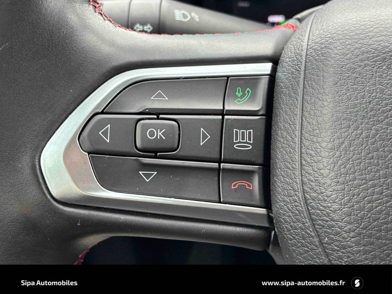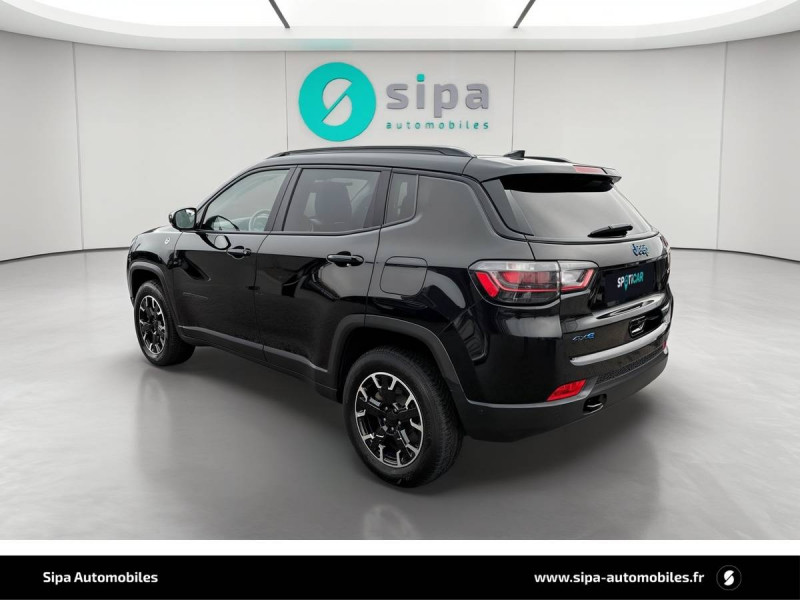 Aide au stationnement AR "Park Sense" / Airbags frontaux, latéraux de type rideau avec airbag passager neutralisable / Alarme périmétrique / Badges Trail Rated / Barres de toit longitudinales / Câble type 2 mode 2 - recharge domestique (8 A / 1,8 kW) / Caméra de recul Parkview avec affichage dynamique / Capteur de luminosité (allumage des feux automatique) / Chargeur sans-fil pour smartphone / Combiné d'instrumentation numérique configurable àécran TFT de 10,25" / Crochets de remorquage / Enter-N-Go : système d'ouverture et de démarrage sans clé / Feux LED avec signature spécifique / Freinage autonome d'urgence avec détection piétons et cyclistes / Frein de stationnement électrique avec aide au démarrage en côte / Jantes alliage 17" Trailrated Hiver, Pneumatiques M+S avec flocon, 235/60 R17 / Jeep Wave - programme de fidelité premium avec 2 ans d'entretien / Modes EV : Hybride, Électrique, eSave / Navigation GPS avec informations sur les panneaux de signalisation / Plaques de protection (suspension, réservoir, transmission, boîte de transfert) / Prise 12V à l'AR et dans le coffre / Prises USB type A et C / Projecteurs AR à Signature LED / Rétroviseur intérieur photochromique / Roue de secours (215/60 R17) usage temporaire / Sellerie en Cuir ventilé avec surpiqûre rouge / Sellerie mixte tissu/TEP avec surpiqûre rouge / Siège conducteur et passager à réglage manuel 6 positions / Siège conducteur réglage lombaire électrique / Siège passager rabattable à plat / Smartbeam : Commutation feux de route / feux de croisement automatique / Sticker de capot "Trailhawk" / Suspension tout-terrain / Système anticollision actif / Système anti-louvoiement en conditions de tractage / Système d'avertissement de franchissement de ligne avec correction / Système d'infodivertissement "UConnect 5" àécran tactile 10,1" / Système préventif anti retournement (ERM) / Tapis de coffre réversible / Tapis de sol caoutchouc / Transmission intégrale eAWD avec Selec-Terrain et mode Rochers / Uconnect Services avec fonctionnalités hybrides rechargeables dédiées