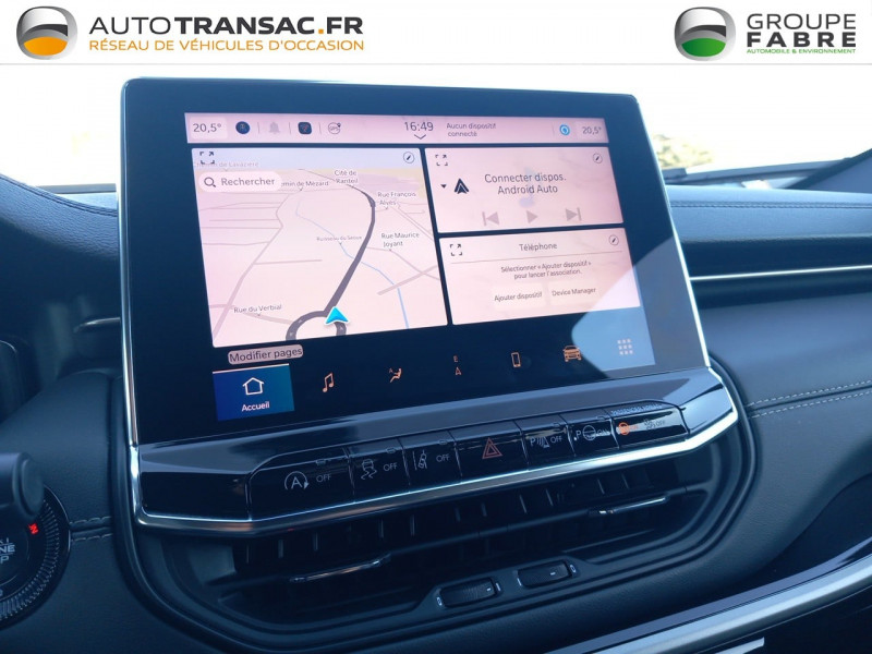 Capteur de luminosité (allumage des feux automatique) / Feux LED avec signature spécifique / Frein de stationnement électrique avec aide au démarrage en côte / Jantes 18" en alliage Granite Crystal 225/55 R18, Pneumatiques 3 saisons / Park Assist:assistance au stationnement parallele/perpendiculaire semi-automatique avec assistance a la sortie / Projecteurs AR à Signature LED / Smartbeam : commutation automatique feux de route/feux de croisement / Airbags frontaux, latéraux de type rideau avec airbag passager neutralisable / Barres de toit longitudinales / Bas de caisse peints en noir / Caméra de recul Parkview avec affichage dynamique / Chargeur sans-fil pour smartphone / Combiné d'instrumentation numérique configurable àécran TFT de 10,25" / Freinage autonome d'urgence avec détection piétons et cyclistes / Jeep Wave - programme de fidelité premium avec 2 ans d'entretien / Kit de gonflage (Fix & Go) avec notice en français / Prise 12V à l'AR et dans le coffre / Prise de courant auxiliaire 230V, prise USB type A et C / Sellerie mixte tissu Seagual/TEP / Siège conducteur et passager à réglage manuel 6 positions / Siège conducteur réglage lombaire électrique / Siège passager AV, rabattable à plat / Sortie d'échappement chromée / Système anti-louveoiment en conditions de tractage / Système anticollision actif / Système d'avertissement de franchissement de ligne avec correction / Système d'infodivertissement àécran tactile 10,1" / Système préventif anti retournement (ERM) / Tapis de sol avec insert spécifique 80th Anniversary / Toit noir / Trappe de carburant à verrouillage électrique / Uconnect Service