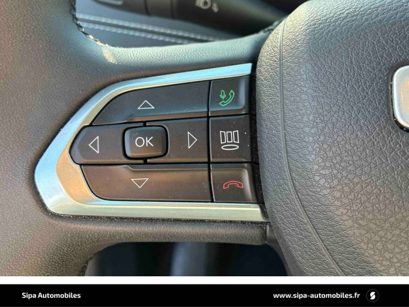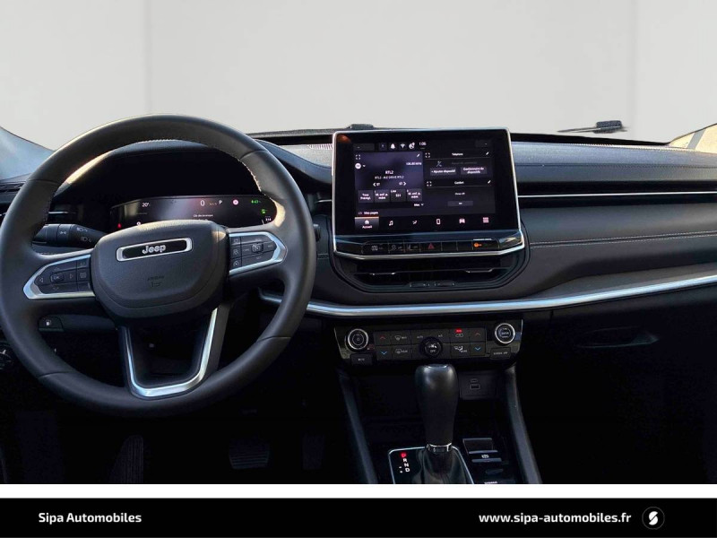 Airbags frontaux, latéraux de type rideau avec airbag passager neutralisable / Alarme périmétrique / Barres de toit longitudinales / Câble type 2 mode 2 - recharge domestique (8 A / 1,8 kW) / Caméra de recul Parkview avec affichage dynamique / Capteur de luminosité (allumage des feux automatique) / Chargeur sans-fil pour smartphone / Combiné d'instrumentation numérique configurable àécran TFT de 10,25" / Enter-N-Go : système d'ouverture et de démarrage sans clé / Feux LED avec signature spécifique / Freinage autonome d'urgence avec détection piétons et cyclistes / Frein de stationnement électrique avec aide au démarrage en côte / Jantes alliage 18" 235/55/R18 pneumatiques 3 saisons / Jeep Wave - programme de fidelité premium avec 2 ans d'entretien / Modes EV : Hybride, Électrique, eSave / Prise 12V à l'AR et dans le coffre / Prises USB type A et C / Projecteurs AR à Signature LED / Rétroviseur intérieur photochromique / Sellerie mixte tissu/TEP / Services connectés Uconnect Services / Siège conducteur et passager à réglage manuel 6 positions / Siège conducteur réglage lombaire électrique / Siège passager rabattable à plat / Smartbeam : Commutation feux de route / feux de croisement automatique / Système anticollision actif / Système anti-louvoiement en conditions de tractage / Système d'avertissement de franchissement de ligne avec correction / Système d'infodivertissement "UConnect 5" àécran tactile 10,1" / Système préventif anti retournement (ERM) / Tapis de sol / Transmission intégrale eAWD avec Selec-Terrain et mode Sport / Uconnect Services avec fonctionnalités hybrides rechargeables dédiées