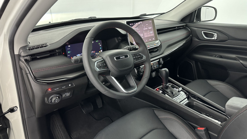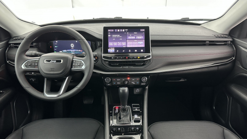 Aide au stationnement avant/arrière "'Park Sense" / Caméra de recuI Parkview avec affichage dynamique / Frein de stationnement électrique / Régulateur de vitesse adaptatif et limiteur de vitesse intelligent / Système anticollision actif / Rétroviseur intérieur photochromique / Sellerie mixte tissu / TEP avec surpiqûres rouges / Siège conducteur avec réglage lombaire électrique / Commutation automatique feux de route / feux de croisement / Système d'ouverture et de démarrage sans clé Enter-N-Go / Barres de toit longitudinales / Jantes en alliage 17" Trailrated avec pneus Mud & Snow / Phares LED avec signature Spécifique / Projecteurs arrière à Signature LED / Chargeur sans-fil pour smartphone / Combiné d'instrumentation numérique configurable àécran TFT de 10.25" / Système d'info-divertissement «Uconnect 5»àécran tactile 10.1" avec Navigation GPS / Plaques de protection {suspension, réservoir. transmission) / Roue de secours à usage temporaire / Transmission intégrale eAWD et Selec-Terrain avec modes de conduites /