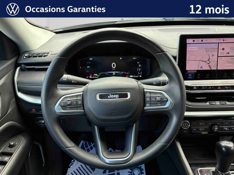Airbags frontaux, latéraux de type rideau avec airbag passager neutralisable / Alarme périmétrique / Barres de toit longitudinales / Câble type 2 mode 2 - recharge domestique (8 A / 1,8 kW) / Caméra de recul Parkview avec affichage dynamique / Capteur de luminosité (allumage des feux automatique) / Chargeur sans-fil pour smartphone / Combiné d'instrumentation numérique configurable àécran TFT de 10,25" / Enter-N-Go : système d'ouverture et de démarrage sans clé / Feux LED avec signature spécifique / Freinage autonome d'urgence avec détection piétons et cyclistes / Frein de stationnement électrique avec aide au démarrage en côte / Jantes alliage 18" 235/55/R18 pneumatiques 3 saisons / Jeep Wave - programme de fidelité premium avec 2 ans d'entretien / Modes EV : Hybride, Électrique, eSave / Prise 12V à l'AR et dans le coffre / Prises USB type A et C / Projecteurs AR à Signature LED / Rétroviseur intérieur photochromique / Sellerie mixte tissu/TEP / Siège conducteur et passager à réglage manuel 6 positions / Siège conducteur réglage lombaire électrique / Siège passager rabattable à plat / Smartbeam : Commutation feux de route / feux de croisement automatique / Système anticollision actif / Système anti-louvoiement en conditions de tractage / Système d'avertissement de franchissement de ligne avec correction / Système d'infodivertissement "UConnect 5" àécran tactile 10,1" / Système préventif anti retournement (ERM) / Tapis de sol / Transmission intégrale eAWD avec Selec-Terrain et mode Sport / Uconnect Services avec fonctionnalités hybrides rechargeables dédiées