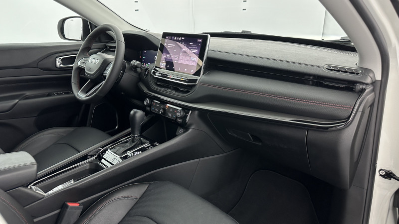 Aide au stationnement avant/arrière "'Park Sense" / Caméra de recuI Parkview avec affichage dynamique / Frein de stationnement électrique / Régulateur de vitesse adaptatif et limiteur de vitesse intelligent / Système anticollision actif / Rétroviseur intérieur photochromique / Sellerie mixte tissu / TEP avec surpiqûres rouges / Siège conducteur avec réglage lombaire électrique / Commutation automatique feux de route / feux de croisement / Système d'ouverture et de démarrage sans clé Enter-N-Go / Barres de toit longitudinales / Jantes en alliage 17" Trailrated avec pneus Mud & Snow / Phares LED avec signature Spécifique / Projecteurs arrière à Signature LED / Chargeur sans-fil pour smartphone / Combiné d'instrumentation numérique configurable àécran TFT de 10.25" / Système d'info-divertissement «Uconnect 5»àécran tactile 10.1" avec Navigation GPS / Plaques de protection {suspension, réservoir. transmission) / Roue de secours à usage temporaire / Transmission intégrale eAWD et Selec-Terrain avec modes de conduites /