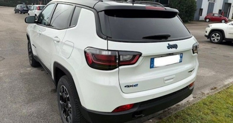 Jeep Compass 1.3 Turbo T4 240ch PHEV 4xe Trailhawk AT6 eAWD, (4×4 Tout terrain), Alpine White+toit noir, 10cv, 5 portes, mise en circulation le 16-05-2024, première main, garantie 12 mois OPTEVEN EXCELENCE + 5 places, couleur intérieur : TISSU, longueur : 4,40 mètres, poids en charge 2475 Kg, boîte de vitesse : automatique OPTIONS ET EQUIPEMENTS : Audio - Télécommunications - 6 Haut parleurs - Commandes du système audio au volant - Ecran tactile - GPS Cartographique - Interface Media - Kit mains-libres Bluetooth - Prise USB - Radio - Radio numérique DAB - Services connectés - TMC Conduite - Aide au démarrage en côte - Arrêt et redémarrage auto. du moteur - Capteur de luminosité - Capteur de pluie - Démarrage sans clé - Limiteur de vitesse - Mode de conduite - Régulateur de vitesse adaptatif - Système d'accès sans clé Extérieur - Barres de toit - Boucliers AV et AR couleur caisse - Caméra de recul - Feux arrière à LED - Feux de jour à LED - Filtre à particules - Jantes Alu - Phares avant LED - Poignées ton carrosserie - Radar de stationnement AR - Radar de stationnement AV - Rétroviseurs dégivrants - Rétroviseurs rabattables électriquement - Rétroviseurs électriques - Système d'éclairage intelligent - Tôle de protection sous moteur Intérieur - Accoudoir arrière - Accoudoir central AV avec rangement - Appui-tête conducteur réglable hauteur - Appui-tête passager réglable en hauteur - Bacs de portes arrière - Bacs de portes avant - Banquette 60/40 - Banquette AR rabattable - Banquette arrière 3 places - Clim automatique bi-zones - Compte tours - Ecran multifonction couleur - Filtre à Pollen - Lampes de lecture à l'avant - Lunette arrière surteintée - Miroir de courtoisie conducteur éclairé - Miroir de courtoisie passager éclairé - Ordinateur de bord - Plancher de coffre mobile - Porte-gobelets arrière - Porte-gobelets avant - Prise 12V - Rétroviseur intérieur électrochrome - Siège cond. avec réglage lombaire électr - Siège conducteur réglable en hauteur - Siège conducteur électrique - Siège passager réglable en hauteur - Siège passager à réglages électriques - Sièges avant à ventilation active - Sièges rang 2 rabattables à plat - Tablette cache bagages - Température extérieure - Verrouillage centralisé des portes - Verrouillage centralisé à distance - Vitres arrière surteintées - Vitres arrière électriques - Vitres avant électriques - Volant multifonction - Volant réglable en profondeur et hauteur Sécurité - ABS - AFIL - Airbag conducteur - Airbag passager déconnectable - Airbags latéraux avant - Airbags rideaux - Airbags rideaux AR - Alarme périmétrique - Alarme volumétrique - Antidémarrage électronique - Antipatinage - Assistance de maintien de trajectoire - Ceintures avant ajustables en hauteur - Détecteur de sous-gonflage - EBD - ESP - Freinage automatique d'urgence - Phares antibrouillard LED - Reconnaissance panneaux de signalisation - Système avancé de détection d'obstacles - Système de détection de somnolence - Système de prévention des collisions - Système de prévention des collisions AR Autres équipements et informations : - Alpine White+toit noir - Colorado Red+toit noir - Cuir ventilé Noir+spq rouge Kilométrage garanti.