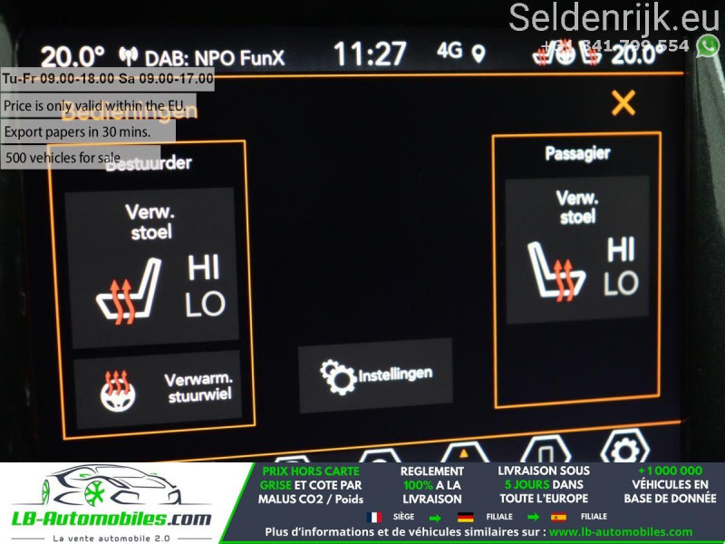 Référence : 1209161 Vos Avantages chez LB-AUTOMOBILES.com / Prix affiché TTC Livré hors carte grise / Livraison sous 10 jours dans toute la France hors 31 / Pas d?avance de frais paiement du véhicule 100% à la livraison par virement. Jeep Compass Neuf remisée, Jeep Compass Occasion Toulouse Beaupuy 31850, Jeep Compass Véhicule sorti de réseau collaborateur, Jeep Compass import, Jeep Compass importateur, Jeep Compass Livraison possible dans toute la France sous 5 jours, Jeep Compass, Jeep Compass Location Option Achat, Jeep Compass LLD, Jeep Compass Longue Durée, Jeep Compass TVA récupérable. Possibilité d'extension de garantie 12, 24,36 mois, Pour tout autres voitures import neufs ou occasions collaborateur fortement remisée, Mandataire Audi, Mandataire BMW, Mandataire Volkswagen, Mandataire Mercedes, Mandataire Peugeot Espagne, Mandataire Renault Espagne, Porsche import, Mandataire Citroën Espagne, Mandataire Seat Espagne, n'hésitez pas à nous contacter. « Sous réserve de vente préalable et erreur de saisie » Principaux équipements : - 4x4 - ABS - Accoudoir - Android Auto - Antidémarrage - Apple CarPlay - Assistance de démarrage en côte - Assistant d'angle mort - Assistant feux de route - Avertisseur de franchissement de ligne - Bluetooth - Capteur de lumière - Capteur de pluie - Carnet d'entretien - Chargement par induction pour smartphones - Cockpit numérique - Contrôle de la pression des pneus - Direction assistée - ESP - Galerie de toit - GPS - Jantes alliage - Phares bi-xénon - Radio DAB - Réglage électrique des sièges - Régulateur de vitesse - Rétroviseur extérieur électrique - Rétroviseur intérieur anti-éblouissement automatique - Sièges chauffants - Support lombaire - Système antipatinage - Système d'alarme - Système de détection de la fatigue - Système Stop & Start - Tuner/radio - Verrouillage centralisé sans clé - Vitre chauffante - Vitres électriques - Volant chauffant - Volant en cuir - Volant multifonction