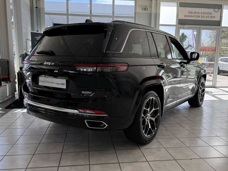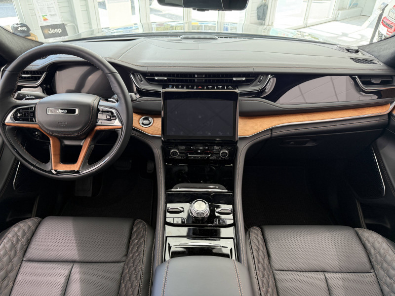 Active Driving Assist: assistance à la conduite semi-autonome / Alarme périmétrique / Alerte anticollision avec arrêt à faible vitesse / Assistant vocal avancé "Hey Jeep" / Barres de toit longitudinales / Cable type 2 mode 2 : recharge domestique (8 A / 1.8 kW) / Caméra 360° / Caméra AV / Chargeur sans fil pour smartphone / Ciel de toit premium / Colonne de direction réglable électriquement en hauteur et en profondeur avec mémoire / Combiné d'instrumentation numérique 10,25'' / Commutation automatique feux de route/feux de croisement / Dégivrage des essuie-glaces AV / Détection de collision en intersection / Déverrouillage portes AV et AR / hayon et démarrage sans clé / Double sortie d'échappement chromée / Eclairage d'accueil / Eclairage d'ambiance multi-colore à LED / Ecran tactile passager 10" / Enter-N-Go : ouverture et démarrage sans clé / ESP - Système de régulation de comportement dynamique / Finitions extérieures Platinum Chrome / Freinage autonome d'urgence avec détection piétons et cyclistes / Frein de stationnement électrique avec fonction Hold 'N Go / Inserts en cuir Palermo sur les contre-portes / Jantes alliage 21" Summit Reserve, 275/45R21XL 3 SEASON Pirelli / Kit fumeur : allume-cigare et cendrier amovible / Navigation connectée avec affichage sur le combiné d'instrumentation numérique / Park Assist: assistance au stationnement parallèle ou perpendiculaire avec aide à la sortie / Prises 12V : 1 dans l'habitacle, 1 dans le coffre ; prise 230V / Prises USB : 2 AV + AUX, 2 AR (recharge) / Rétroviseur intérieur numérique / Rétroviseurs extérieurs Gloss Black, dégivrants, photochromiques, rabattables électriquement et vers le sol en marche AR / Revêtement tableau de bord en TEP / Selec-Terrain : système de gestion de la motricite (modes Auto, Sable/Boue, Neige, Sport et Rochers) / Sellerie cuir matelassé Parlermo / Services connectés Uconnect Services / Seuils de portes rétroéclairés / Siège conducteur avec mémoire / Sieges AV et AR chauffants et ventilés / Sieges AV réglables électriquement 16 voies / Stores pare soleil intégrés aux portes AR / Surveillance des angles morts et détection de présence AR / Suspension pneumatique Quadra lift adaptative / Systeme audio premium McIntosh 19 haut-parleurs / 950 W / Système multimédia àécran tactile Uconnect 10,1''avec Apple CarPlay et Android Auto / Tapis de coffre réversible / Tapis de sol premium AV et AR / Toit noir / Toit ouvrant panoramique CommandView / Transmission intégrale Quadra-Drive II avec différentiel AR à glissement limitéélectronique (eLSD) / Vision nocturne (détection piéton et animaux) / Volant chauffant gainé de cuir avec commandes audio et palettes de changement de vitesse