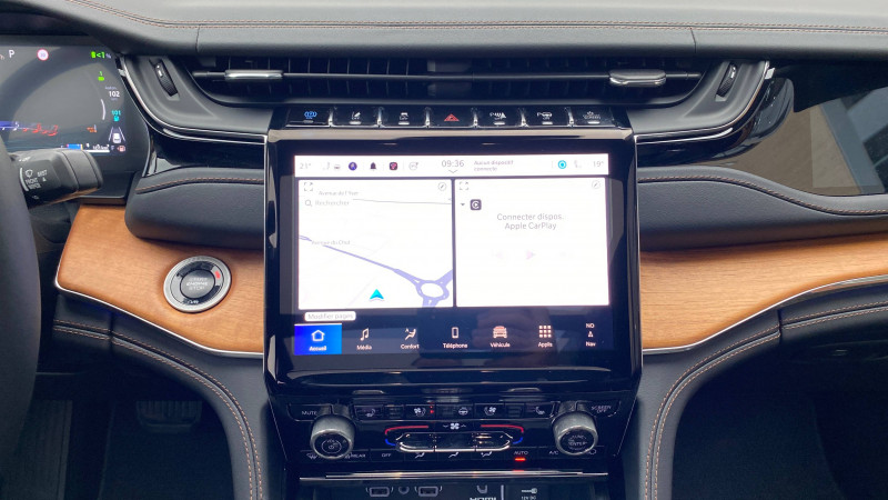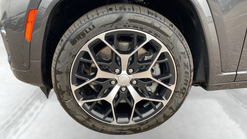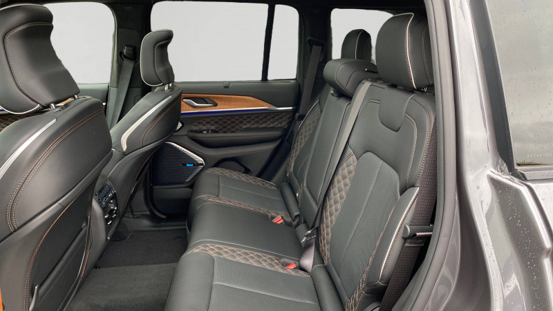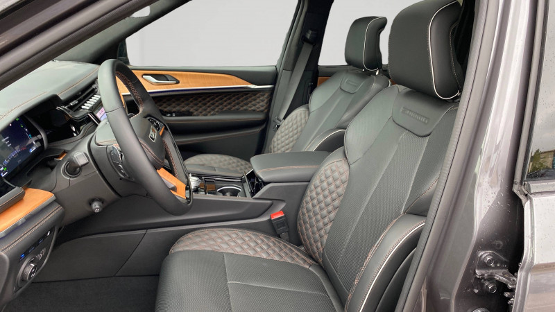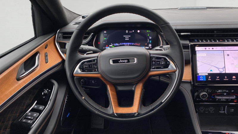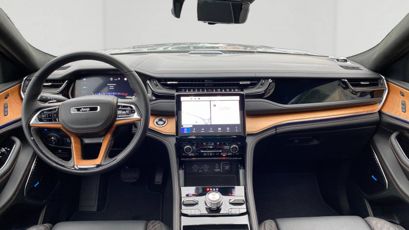 Active Driving Assist: assistance à la conduite semi-autonome / Alarme périmétrique / Alerte anticollision avec arrêt à faible vitesse / Assistant vocal avancé "Hey Jeep" / Barres de toit longitudinales / Cable type 2 mode 2 : recharge domestique (8 A / 1.8 kW) / Caméra 360° / Caméra AV / Chargeur sans fil pour smartphone / Ciel de toit premium / Colonne de direction réglable électriquement en hauteur et en profondeur avec mémoire / Combiné d'instrumentation numérique 10,25'' / Commutation automatique feux de route/feux de croisement / Dégivrage des essuie-glaces AV / Détection de collision en intersection / Déverrouillage portes AV et AR / hayon et démarrage sans clé / Double sortie d'échappement chromée / Eclairage d'accueil / Eclairage d'ambiance multi-colore à LED / Ecran tactile passager 10" / Enter-N-Go : ouverture et démarrage sans clé / ESP - Système de régulation de comportement dynamique / Finitions extérieures Platinum Chrome / Freinage autonome d'urgence avec détection piétons et cyclistes / Frein de stationnement électrique avec fonction Hold 'N Go / Inserts en cuir Palermo sur les contre-portes / Jantes alliage 21" Summit Reserve, 275/45R21XL 3 SEASON Pirelli / Kit fumeur : allume-cigare et cendrier amovible / Navigation connectée avec affichage sur le combiné d'instrumentation numérique / Park Assist: assistance au stationnement parallèle ou perpendiculaire avec aide à la sortie / Prises 12V : 1 dans l'habitacle, 1 dans le coffre ; prise 230V / Prises USB : 2 AV + AUX, 2 AR (recharge) / Rétroviseur intérieur numérique / Rétroviseurs extérieurs Gloss Black, dégivrants, photochromiques, rabattables électriquement et vers le sol en marche AR / Revêtement tableau de bord en TEP / Selec-Terrain : système de gestion de la motricite (modes Auto, Sable/Boue, Neige, Sport et Rochers) / Sellerie cuir matelassé Parlermo / Services connectés Uconnect Services (12 mois gratuit) / Seuils de portes rétroéclairés / Siège conducteur avec mémoire / Sieges AV et AR chauffants et ventilés / Sieges AV réglables électriquement 16 voies / Stores pare soleil intégrés aux portes AR / Surveillance des angles morts et détection de présence AR / Suspension pneumatique Quadra lift adaptative / Systeme audio premium McIntosh 19 haut-parleurs / 950 W / Système multimédia àécran tactile Uconnect 10,1''avec Apple CarPlay et Android Auto / Tapis de coffre réversible / Tapis de sol premium AV et AR / Toit noir / Toit ouvrant panoramique CommandView / Transmission intégrale Quadra-Drive II avec différentiel AR à glissement limitéélectronique (eLSD) / Vision nocturne (détection piéton et animaux) / Volant chauffant gainé de cuir avec commandes audio et palettes de changement de vitesse