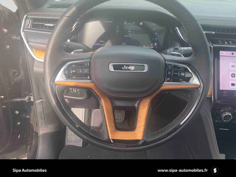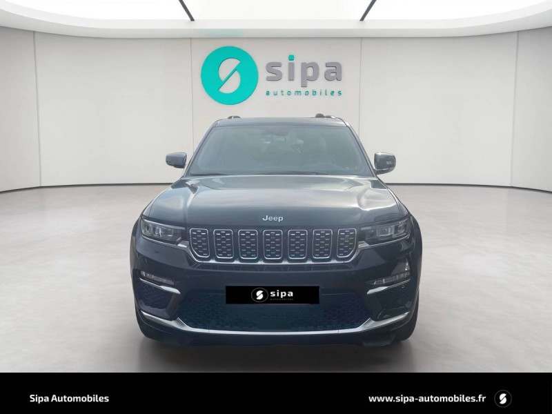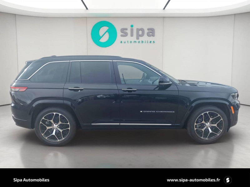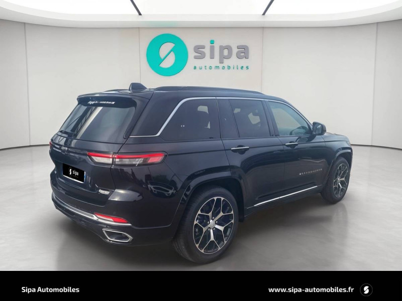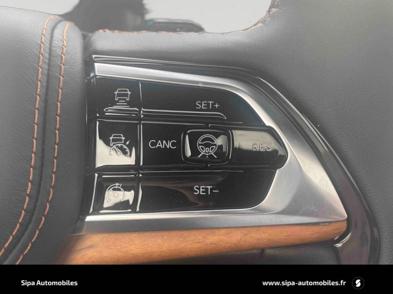 Active Driving Assist: assistance à la conduite semi-autonome / Alarme périmétrique / Alerte anticollision avec arrêt à faible vitesse / Assistant vocal avancé "Hey Jeep" / Barres de toit longitudinales / Cable type 2 mode 2 : recharge domestique (8 A / 1.8 kW) / Caméra 360° / Caméra AV / Chargeur sans fil pour smartphone / Ciel de toit premium / Colonne de direction réglable électriquement en hauteur et en profondeur avec mémoire / Combiné d'instrumentation numérique 10,25'' / Commutation automatique feux de route/feux de croisement / Dégivrage des essuie-glaces AV / Détection de collision en intersection / Déverrouillage portes AV et AR / hayon et démarrage sans clé / Double sortie d'échappement chromée / Eclairage d'accueil / Eclairage d'ambiance multi-colore à LED / Ecran tactile passager 10" / Enter-N-Go : ouverture et démarrage sans clé / ESP - Système de régulation de comportement dynamique / Finitions extérieures Platinum Chrome / Freinage autonome d'urgence avec détection piétons et cyclistes / Frein de stationnement électrique avec fonction Hold 'N Go / Inserts en cuir Palermo sur les contre-portes / Jantes alliage 21" Summit Reserve, 275/45R21XL 3 SEASON Pirelli / Kit fumeur : allume-cigare et cendrier amovible / Navigation connectée avec affichage sur le combiné d'instrumentation numérique / Park Assist: assistance au stationnement parallèle ou perpendiculaire avec aide à la sortie / Prises 12V : 1 dans l'habitacle, 1 dans le coffre ; prise 230V / Prises USB : 2 AV + AUX, 2 AR (recharge) / Rétroviseur intérieur numérique / Rétroviseurs extérieurs Gloss Black, dégivrants, photochromiques, rabattables électriquement et vers le sol en marche AR / Revêtement tableau de bord en TEP / Selec-Terrain : système de gestion de la motricite (modes Auto, Sable/Boue, Neige, Sport et Rochers) / Sellerie cuir matelassé Parlermo / Services connectés Uconnect Services / Seuils de portes rétroéclairés / Siège conducteur avec mémoire / Sieges AV et AR chauffants et ventilés / Sieges AV réglables électriquement 16 voies / Stores pare soleil intégrés aux portes AR / Surveillance des angles morts et détection de présence AR / Suspension pneumatique Quadra lift adaptative / Systeme audio premium McIntosh 19 haut-parleurs / 950 W / Système multimédia àécran tactile Uconnect 10,1''avec Apple CarPlay et Android Auto / Tapis de coffre réversible / Tapis de sol premium AV et AR / Toit noir / Toit ouvrant panoramique CommandView / Transmission intégrale Quadra-Drive II avec différentiel AR à glissement limitéélectronique (eLSD) / Vision nocturne (détection piéton et animaux) / Volant chauffant gainé de cuir avec commandes audio et palettes de changement de vitesse
