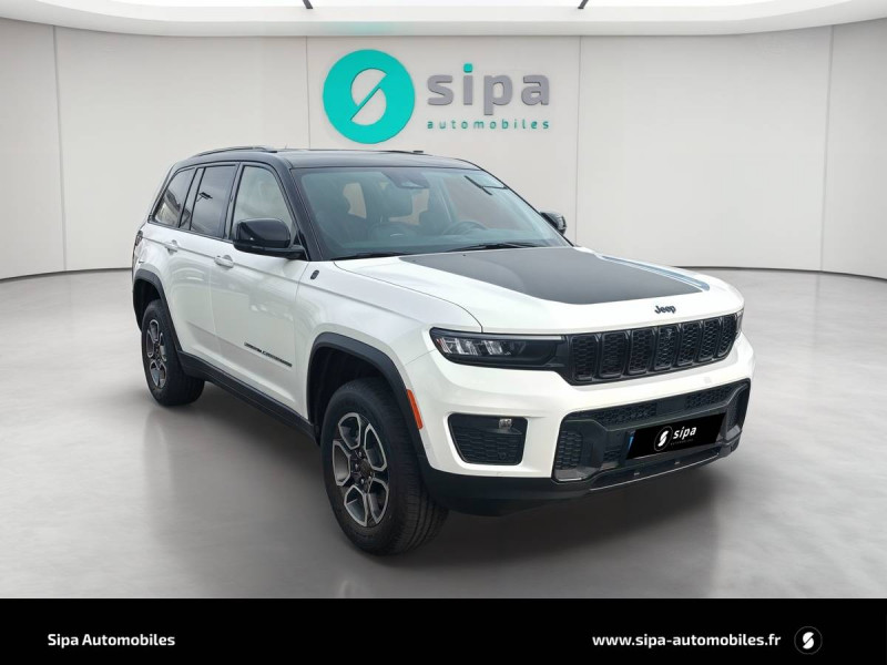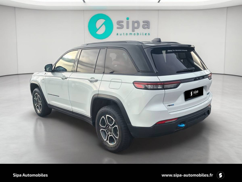 Alarme périmétrique / Alerte anticollision avec arrêt à faible vitesse / Barres de toit longitudinales / Cable recharge mode 2 type 2 / Caméra AV / Colonne de direction réglable électriquement en hauteur et en profondeur avec mémoire / Combiné d'instrumentation numérique 10,25'' / Commutation automatique feux de route/feux de croisement / Crochets de remorquage bleus / Dégivrage des essuie-glaces AV / Détection collision frontale / intersection / Déverrouillage des portes AV et du hayon sans clé / Enter-N-Go : ouverture et démarrage sans clé / ESP - Système de régulation de comportement dynamique / Feux de croisement à LED / Finitions extérieures Gloss Black / Freinage d'urgence (détection piétons et cyclistes) / Frein de stationnement électrique avec fonction Hold 'N Go / Jantes alliage 18'' Trailhawk, 265/60R18 BSW 3 SEASON Goodyear / Kit fumeur / Plaque de protection (réservoir, boite de transfert et suspensions AV) / Prise auxiliaire 12v AV+AR / Prises USB AV et AR (recharge) / Rétroviseur intérieur photochromatique / Rétroviseurs extérieurs Gloss Black, dégivrants, photochromiques, rabattables électriquement et vers le sol en marche AR / Selec Speed: contrôle de la vitesse en conduite tout-terrain / Selec terrain / Sellerie cuir Capri et daim / Services connectés Uconnect Services (12 mois gratuit) / Siège conducteur avec mémoire / Sièges AV chauffants et ventilés, sièges AR chauffants / Sieges AV réglables électriquement 8 voies / Surveillance des angles morts et détection de présence AR / Suspension pneumatique Quadra lift adaptative / Système audio Alpine 9 HP / Système multimédia àécran tactile Uconnect 10,25'' avec Apple Carplay, Android Auto sans fils / Tapis de sol en caoutchouc / Toit noir / Transmission intégrale Quadra-Drive II avec différentiel AR à glissement limitéélectronique (eLSD) / Volant chauffant gainé de cuir avec commandes audio et palettes de changement de vitesse