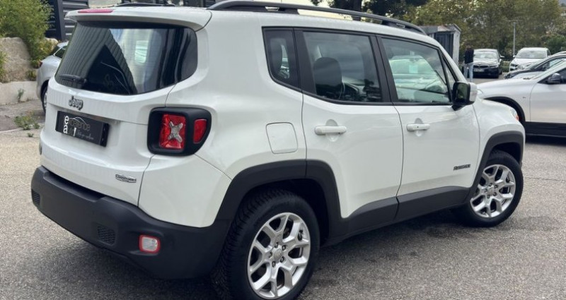 Jeep RENEGADE 1.4 MULTIAIR S&S 140CH LIMITED BVRD6, (S.U.V.), BLANC, 8cv, 5 portes, mise en circulation le 24-02-2017, garantie 3 mois (3 MOIS). 5 places, longueur : 4,25 mètres, boîte de vitesse : automatique OPTIONS ET EQUIPEMENTS : Audio - Télécommunications - 6 Haut parleurs - Commandes du système audio au volant - Commandes vocales - Ecran tactile - GPS Cartographique - Interface Media - Kit mains-libres Bluetooth - Lecteur carte SD - Prise Jack - Prise USB - Prise auxiliaire de connexion audio - Radio Conduite - Aide au démarrage en côte - Arrêt et redémarrage auto. du moteur - Démarrage sans clé - Frein stationnement électrique - Limiteur de vitesse - Régulateur de vitesse - Système d'accès sans clé Extérieur - Barres de toit - Becquet arrière - Echappement à double sortie - Eclairage statique d'intersection - Jantes Alu - Phares halogènes - Poignées ton carrosserie - Radar de recul - Radar de stationnement AV - Rétroviseurs dégivrants - Rétroviseurs rabattables électriquement - Rétroviseurs électriques - Sortie d'échappement chromée Intérieur - Accoudoir central AR avec trappe à skis - Accoudoir central AV avec rangement - Banquette 40/20/40 - Banquette AR rabattable - Clim automatique bi-zones - Compte tours - Direction assistée électrique - Eclairage d'ambiance - Ordinateur de bord - Prise 12V - Prise 220V - Siège conducteur réglable en hauteur - Siège passager rabattable - Tablette cache bagages - Verrouillage centralisé à distance - Vitres arrière électriques - Vitres avant électriques - Vitres teintées - Volant cuir - Volant multifonction - Volant réglable en profondeur et hauteur Sécurité - ABS - AFIL - Aide au freinage d'urgence - Airbag conducteur - Airbag passager - Airbags latéraux avant - Airbags rideaux AV et AR - Antidémarrage électronique - Antipatinage - Appuis-tête avant actifs - Assistance de maintien de trajectoire - BAS - Ceintures avant ajustables en hauteur - Contrôle élect. de la pression des pneus - Détecteur de sous-gonflage - EBD - ESP - Phares antibrouillard - Préparation Isofix - Système de prévention des collisions Autres équipements et informations : - Colorado Red Kilométrage garanti. Référence annonce : 10745