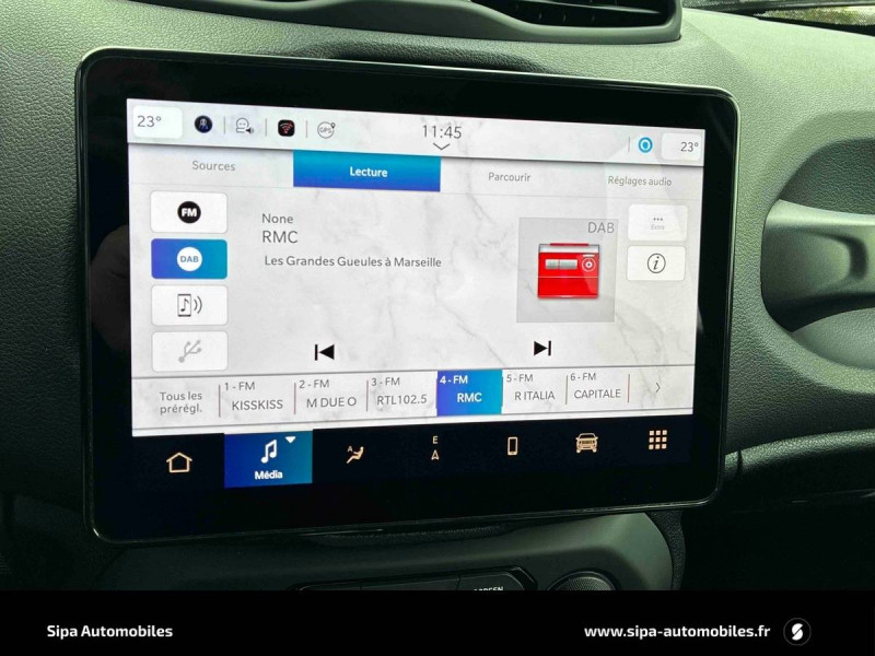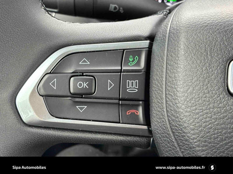 Alerte anticollision avec arrêt à faible vitesse / Barres de toit longitudinales Noir / Calandre noir mat avec cerclages d'ouïes argent / Capteur de luminosité (Allumage des feux automatique) / Combiné d'instrumentation numérique configurable àécran TFT de 10,25" / Commutation feux de croisement / feux de route automatique / Contrôle électronique de la stabilité ESC et aide au démarrage en côte / Coques de rétroviseurs extérieurs noires / Feux Full LED (feux de jour, de croisement, de route, antibrouillard, AR) / Frein de stationnement électrique / Jantes alliage 17" Passion, Pneumatiques 3 saisons 215/60 R17 / Prise USB A au 2nd rang / Prise USB type A et C pour passagers AV / Radio numérique DAB avec connexion Bluetooth, 6 HP, commandes au volant / Rétroviseur intérieur photochromique / Sellerie en Tissu / Services connectés Uconnect Services / Siège conducteur réglage lombaire électrique / Siège passager rabattable à plat / Système anti-louveoiment de la remorque / Système d'infodivertissement Uconnect avec navigation GPS àécran tactile 10,1" / Vitres électriques AV et AR, séquentielles à l'AV