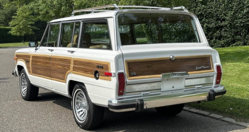 1988 Jeep Grand Wagoneer • V8 Motor • Automatic Transmission • Air Conditioning • Cruise Control • Power-Adjustable Front Seats • Pearl White • Tan Leather & Cloth Upholstery • 15? Multi-Spoke Alloy Wheels • Roof Rack • Power-Retractable Rear Window • Bluetooth Radio • Mileage: 28322. Provenance : New York. Disponibilité : environ 7 semaines, clés en main. 77 500 € tout compris (importation, taxes, procédure d'immatriculation). Annonce publiée le 28/11/2025