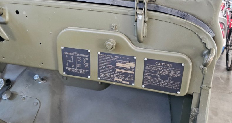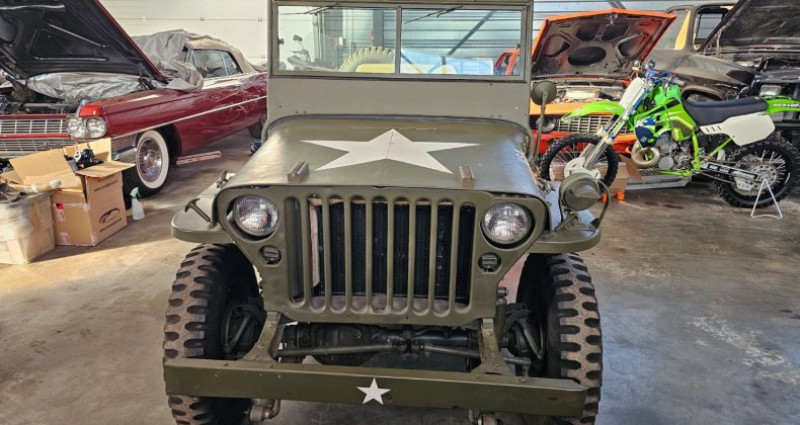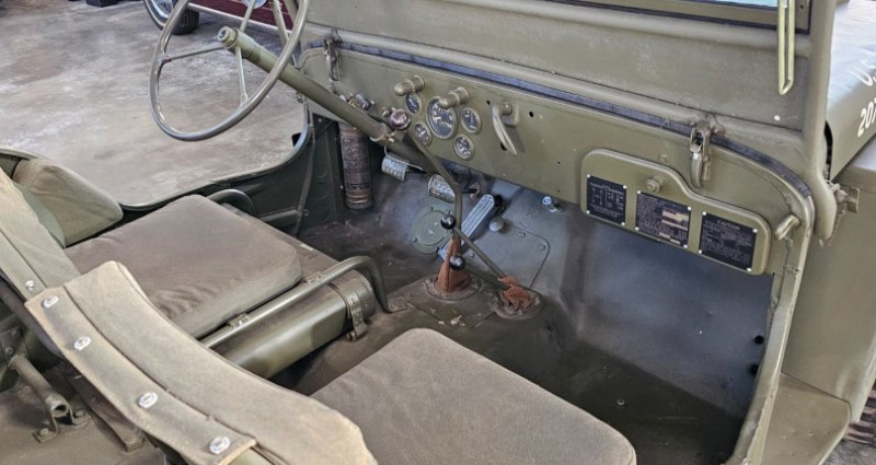 Willys MB de 1943 véritable, numéro de châssis 289584 ce qui la date de fin 1943. Elle est en superbe état, restaurée complètement il y a quelques années, avec démontage complet, sablage et peinture, révision complète de la mécanique, peinture. Point les éléments de la voiture d'époque et non des repros (châssis 1943, et caisse / moteur avec numéros d'origine toujours présents de 1945). La sellerie, la bâche, les faisceaux électriques, durits, alliage, joints etc eux ont été remplacé en neuf. Elle présente très bien et fonctionne normalement. C'est un modèle rare, avec une grosse valeur historique. Petite particularité, nous l'avons importée de Los Angeles, cette jeep n'est pas une Europe, mais était une US véritable utilisée en base US Army en Californie.