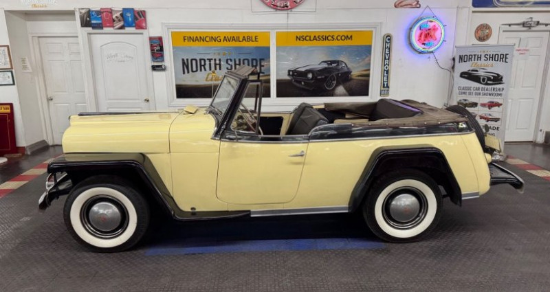 Châssis Willys Jeepster, 4 cylindre, boîte de vitesses manuelle, 41 123 miles, couleurs extérieure et intérieure : jaune / noir, disponible maintenant, stock #: 5064ZCV.. Provenance : Illinois. Disponibilité : environ 7 semaines, clés en main. 21 500 € tout compris (importation, taxes, procédure d'immatriculation). Annonce publiée le 01/12/2025