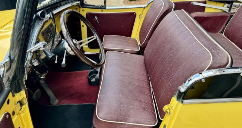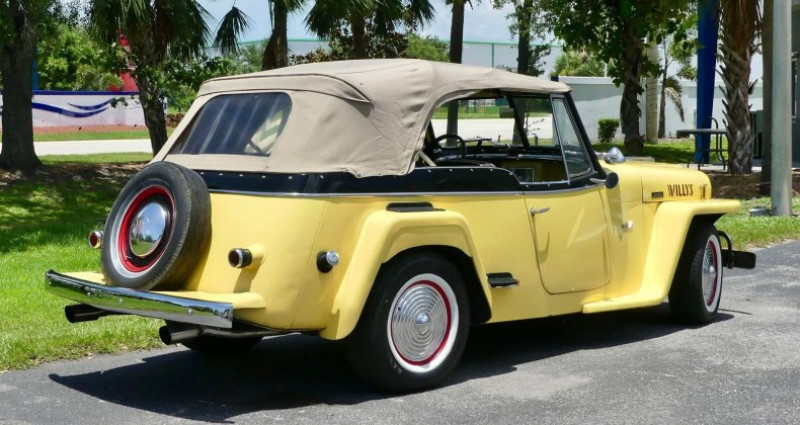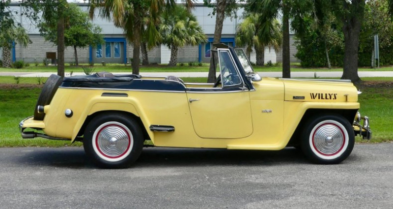 - Marque : Willys - Modèle : Jeepster - Année : 1949 - Moteur : 350 CID V8 - Transmission : Automatique - Couleur extérieure : Jaune - Couleur intérieure : Marron - Boîte de vitesses : Automatique - Roues : Avec disques de roue en chrome et pneus radiaux avec bandes portawall blanches - Titre propre : Oui. Provenance : Florida. Disponibilité : environ 7 semaines, clés en main. 25 500 € tout compris (importation, taxes, procédure d'immatriculation). Annonce publiée le 05/12/2025