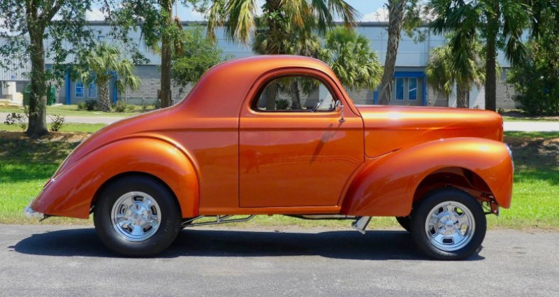 - Année : 1941 - Marque : Willys - Modèle : Coupe - Kilométrage (depuis construction) : 2 072 miles - VIN : W288809 - Stock : 1010-TAMPA - Moteur : 502 Ramjet V8 - Transmission : Turbo 400 automatique - Couleur extérieure : Atomique Orange Métallisé - Couleur intérieure : Tan - Siège : sièges baquets en Ultraleather. Provenance : Florida. Disponibilité : environ 7 semaines, clés en main. 84 500 € tout compris (importation, taxes, procédure d'immatriculation). Annonce publiée le 05/12/2025