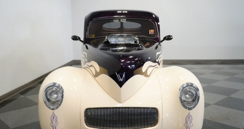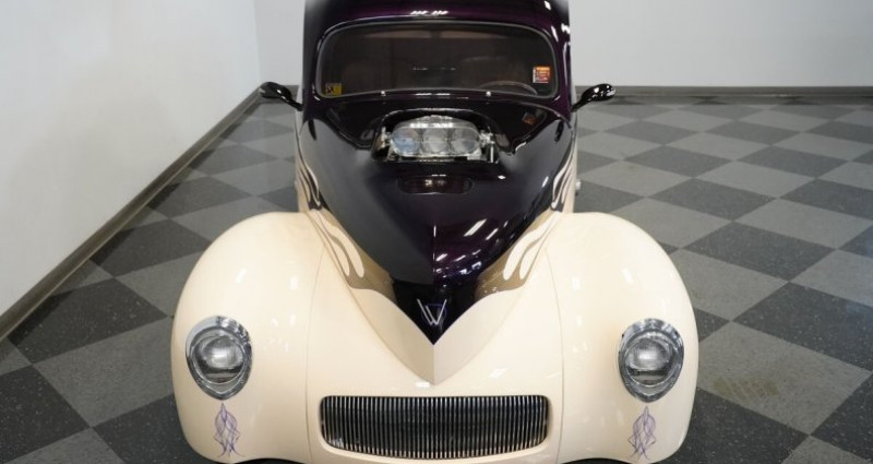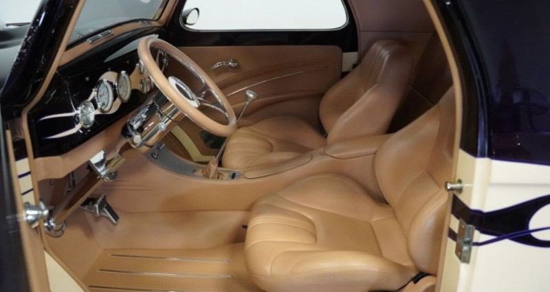 - Marque : Willys - Modèle : Coupe - Année : 1941 - Moteur : 502 V8 - Superchargeur : BDS 871 - Boîte de vitesses : TH400 3-vitesse automatique - Transmission : RWD - Suspension avant : Indépendante avec air ride - Suspension arrière : Four-Link avec air ride et barre Z - Freins : 4-pistons disc avec rotors perforés et lissés - Roues : 17 pouces Budnick aluminium - Pneus : 215/40R17 (avant) et 31x16.50R17 (arrière) - Intérieur : Cuir corail avec sièges baquet - Dash : Peint avec des flammes personnalisés - Instruments : Analogiques blancs-visage - Options : Vidéo, air ride, freins, pneus, intérieur, peinture, freins, roues, moteur, superchargeur, transmission, suspension, exhaustion, corps, pinstriping, logos, shifter, pédales, colonne de direction, fenêtres électriques, direction électrique, etc. - État : Neuf (kilométrage : 0). Provenance : Arizona. Disponibilité : environ 7 semaines, clés en main. 136 000 € tout compris (importation, taxes, procédure d'immatriculation). Annonce publiée le 11/12/2025