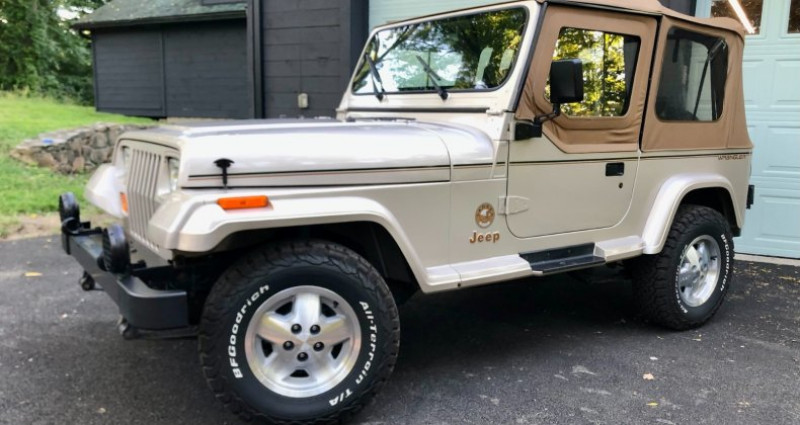 Ce 1995 Jeep Wrangler Sahara, doté de l'immatriculation 1J4FY49S8SP290023, se caractérise par un émulsion Light Pearlstone Pearlcoat de teinte rare. Il a été conduit pour une faible distance de 36 700 miles. Le moteur 4, 0L à six cylindres est équipé d'une boîte de vitesses à cinq rapports manuelle. Ce véhicule dispose également d'un climatisation fabriquée en série, d'alliages d'aluminium et de cinq nouvelles pneus BFGoodrich Tires. L'état général de ce modèle est exceptionnel, marqué par l'absence de rouille, d'accidents et de retouches de peinture originale. Les photographies supplémentaires peuvent être fournies à la demande.. Ce descriptif est basé sur les éléments communiqués par le propriétaire avec un traitement assisté. Merci pour votre indulgence en cas de formulation perfectible. Provenance : New York. Disponibilité : 7 semaines, clés en main. 43 500 € tout compris (importation, taxes, procédure d'immatriculation). Annonce publiée le 08/10/2025