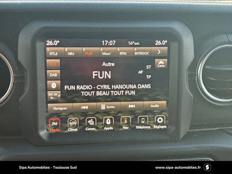 ABS - Système antiblocage des roues avec gestion différenciée en fonction de la nature du terrain / Calandre couleur carrosserie / Couvre roue de secours rigide / Détecteur d'angle mort et de présence AR / Dual Top Premium / Elargisseurs d'ailes couleur carrosserie / Enter-N-Go : ouverture et démarrage sans clé / ESP - Système de régulation de comportement dynamique / Hard-top modulaire Freedom Top couleur carrosserie (3 pièces) / Jantes alliage 18", 255/70 R18 T (M+S) et Pneus Bridgestone Dueler HT 685 / Kit fumeur / Marche-pieds / Pack Sécurité / Pare-soleil avec miroir éclairé / Porte-gobelets rétroéclairés / Prise auxiliaire 12v AV+AR / Rétroviseur intérieur photochromatique / Rétroviseurs avec réglage électrique et fonction dégivrage / Revêtement intérieur insonorisant sur le Hard top / Sellerie cuir Premium McKinley / Siège conducteur réglable 6 points + lombaire 2 points / Siège passager réglable 4 points / Système audio Premium Alpine 8,4''+9 HP / Système de navigation àécran tactile Uconnect 8,4'' / Tapis de sol AV et AR et de coffre / Transmission intégrale Command-Trac Time 2.72:1 / Trappe à carburant noire