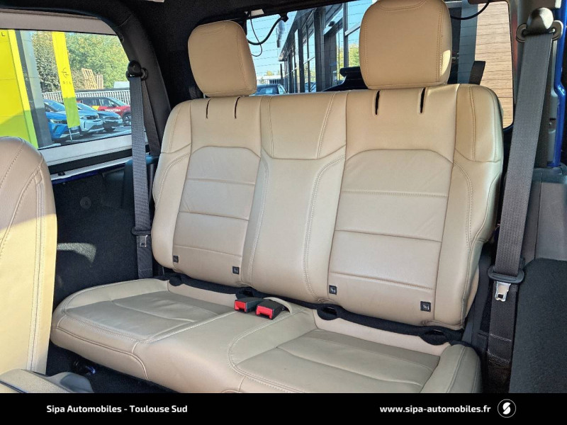 ABS - Système antiblocage des roues avec gestion différenciée en fonction de la nature du terrain / Calandre couleur carrosserie / Couvre roue de secours rigide / Détecteur d'angle mort et de présence AR / Elargisseurs d'ailes couleur carrosserie / Enter-N-Go : ouverture et démarrage sans clé / ESP - Système de régulation de comportement dynamique / Hard-top modulaire Freedom Top couleur carrosserie (3 pièces) / Jantes alliage 18" et pneus Bridgestone Dueler (M+S) / Kit fumeur / Marche-pieds / Pack Sécurité / Pare-soleil avec miroir éclairé / Porte-gobelets rétroéclairés / Prise auxiliaire 12v AV+AR / Rétroviseur intérieur photochromatique / Rétroviseurs avec réglage électrique et fonction dégivrage / Revêtement intérieur insonorisant sur le Hard top / Sellerie cuir Premium McKinley / Siège conducteur réglable 6 points + lombaire 2 points / Siège passager réglable 4 points / Système audio Premium Alpine 8,4''+9 HP / Système de navigation àécran tactile Uconnect 8,4'' / Tapis de sol AV et de coffre / Transmission intégrale Command-Trac Time 2.72:1 / Trappe à carburant noire