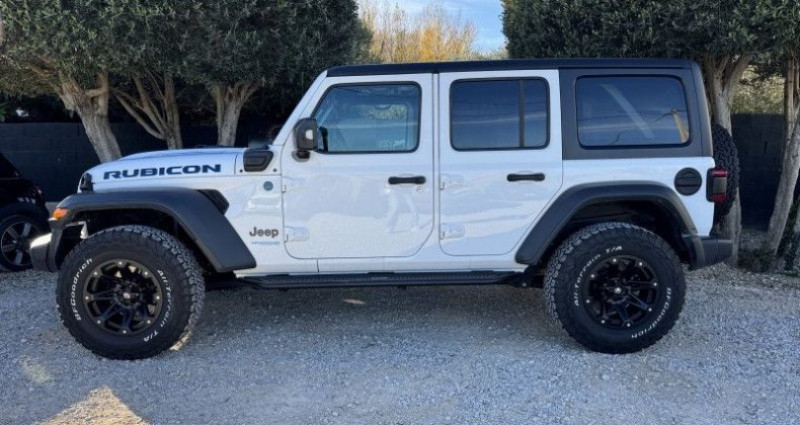 Jeep WRANGLER UNLIMITED 2.0 T 380CH 4XE RUBICON ROCK-TRAC, (4×4 Tout terrain), BLANC, 16cv, 5 portes, mise en circulation le 16-12-2021, première main, garantie 12 mois (12 MOIS). 5 places, couleur intérieur : NOIR, longueur : 4,88 mètres, boîte de vitesse : automatique OPTIONS ET EQUIPEMENTS : Audio - Télécommunications - 9 Haut parleurs - AUTORADIO - Ecran tactile - GPS Cartographique - Interface Media Conduite - Capteur de luminosité - Démarrage sans clé - Limiteur de vitesse - Régulateur de vitesse Extérieur - Caméra de recul - Caméra de stationnement AV - Capote souple - Hard top modulaire Freedom Top noir - Phares avant LED - Radar de stationnement AR - Radar de stationnement AV - Rétroviseurs dégivrants Intérieur - Clim automatique bi-zones - Ecran multifonction couleur - Kit Fumeur - Porte-gobelets avant - Prise 12V - Rétroviseur intérieur électrochrome - Siège conducteur réglable en hauteur - Siège passager réglable en hauteur - Température extérieure - Verrouillage centralisé des portes - Vitres arrière surteintées - Vitres arrière électriques - Vitres avant électriques - Volant cuir - Volant multifonction Sécurité - ABS - Contrôle élect. de la pression des pneus - ESP - Phares antibrouillard Autres équipements et informations : - ANDROID AUTO - CARPLAY - CARPLAY / ANDROID AUTO Kilométrage garanti. Marche pied rino dominator Bache décapotable neuve Appel visio sur demande Frais de mise a la route 389,00€ TTC Reprise possible sur : Ford ranger, Toyota Hilux,land cruiser, Mitsubishi Pajero, Nissan patrol, volkswagen amarok, Suzuki jimmny, Land rover defender Tous nos véhicules sont visibles sur parc, prêts à la vente sans délai, révisés et sans frais supplémentaires à prévoir, avec contrôle technique valide. Pour l’estimation de votre reprise, merci de nous fournir les informations suivantes : Modèle, année, finition, motorisation, kilométrage. Garantie disponible: De 12 à 48 mois. Financement : De 12 à 84 mois, sous réserve d’acceptation de votre dossier. Attention : Un crédit vous engage et doit être remboursé. Vérifiez vos capacités de remboursement avant de vous engager. Livraison : Partout en France métropolitaine, hors DOM-TOM et Corse. Services gratuit : Récupération à la gare ou à l’aéroport. Référence annonce : 478
