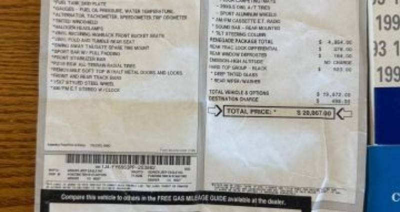 - Marque : Jeep - Modèle : Wrangler / Yj - Année : 1993 - Couleur extérieure : Rouge - Couleur intérieure : Gris - Type de transmission : Manuelle, 5 vitesses - Type de carburant : Essence - Moteur : 4.0L Gas I6 - Mileage : 40, 074 miles - Propulsion : Rear Wheel Drive avec 4x4. Provenance : Illinois. Disponibilité : environ 7 semaines, clés en main. 35 000 € tout compris (importation, taxes, procédure d'immatriculation). Annonce publiée le 14/12/2025