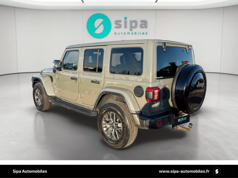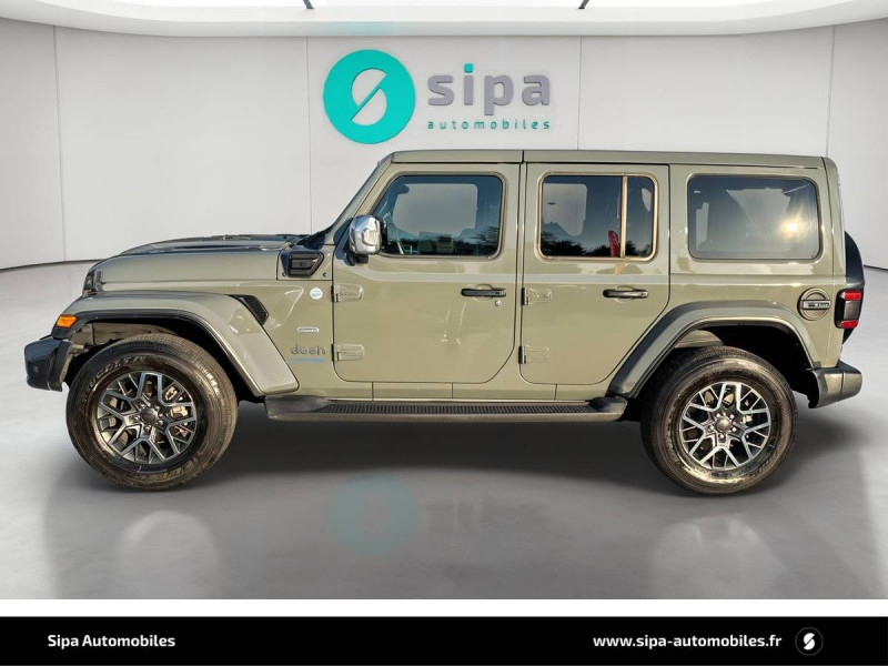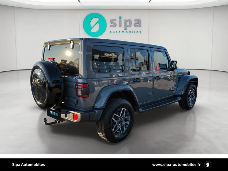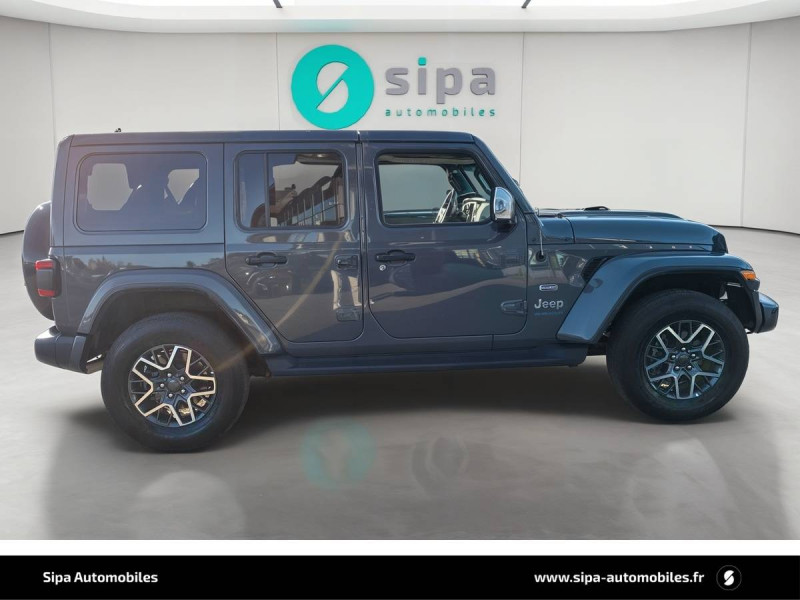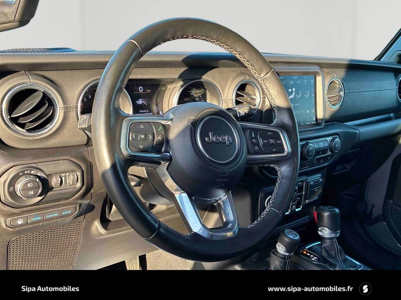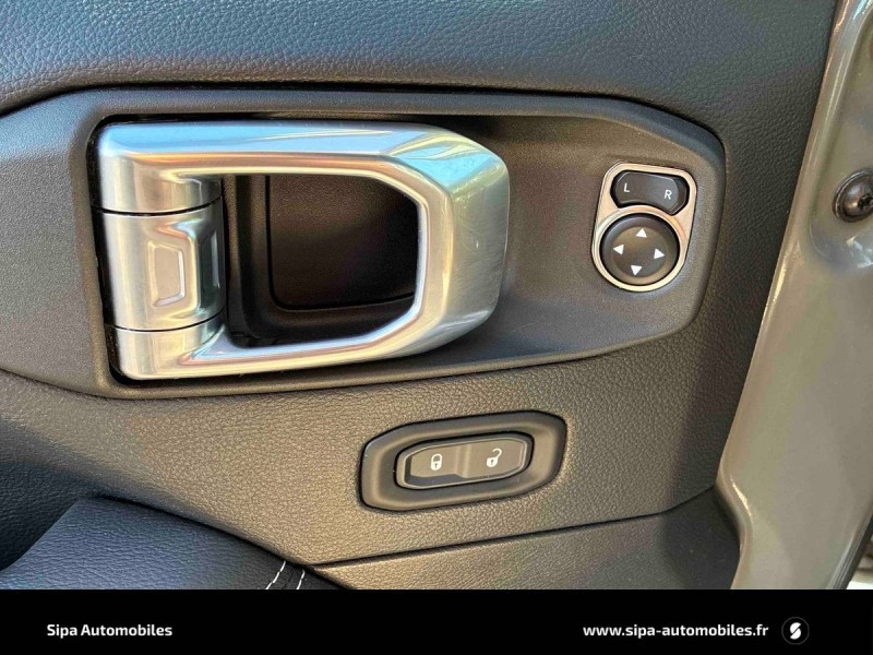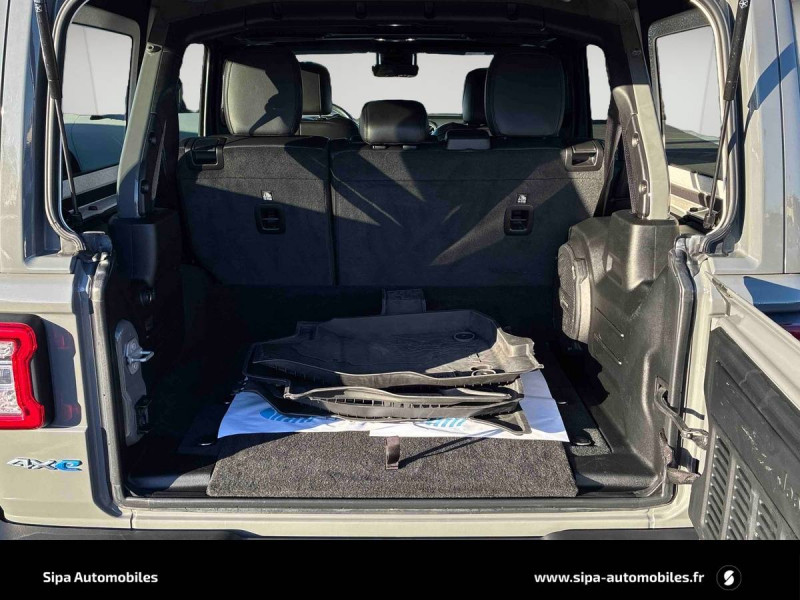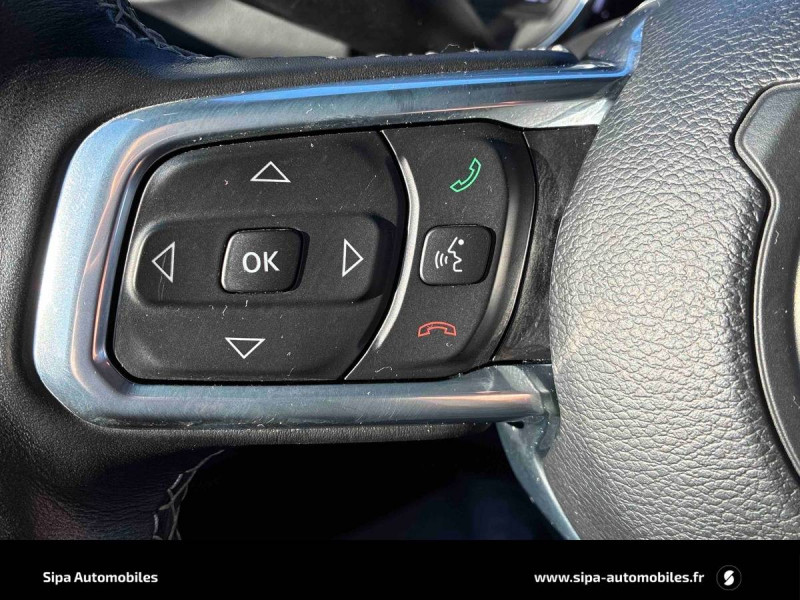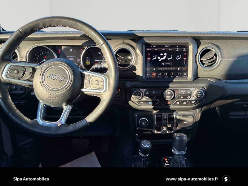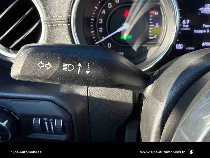 Cable recharge mode 2 type 2 / Calandre couleur carrosserie / Couvre roue de secours rigide / Crochets de remorquage bleus / Détecteur d'angle mort et de présence AR / Dual Top Premium Capote souple Sunrider Premium noire et Hard Top modulaire Freedom Top couleur carrosserie / Elargisseurs d'ailes couleur carrosserie / ESP - Système de régulation de comportement dynamique / Feux de route automatiques / Jantes alliage 18", 255/70 R18 T (M+S) et Pneus Bridgestone Dueler HT 685 / Kit fumeur / Marche-pieds / Pack Sécurité / Pare-soleil avec miroir éclairé / Porte-gobelets rétroéclairés / Prise auxiliaire 12v AV+AR / Rétroviseur intérieur photochromatique / Rétroviseurs avec réglage électrique et fonction dégivrage / Revêtement intérieur insonorisant sur le Hard top / Siège conducteur réglable 6 points + lombaire 2 points / Siège passager réglable 4 points / Système audio Premium Alpine 8,4''+8 HP+Subwoofer / Système de navigation àécran tactile Uconnect 8,4''avec Apple CarPlay et Android Auto / Tapis de sol et de coffre / Transmission intégrale Command Select-Trac Time 2.72:1 / Volant cuir multifonction + pommeau de levier de vitesses cuir