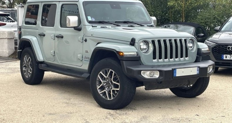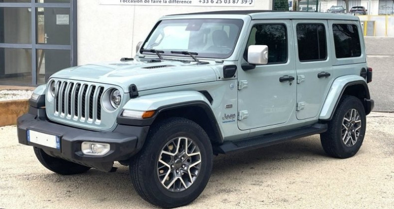 Jeep WRANGLER UNLIMITED 2.0 T 380CH 4XE OVERLAND COMMAND-TRAC MY23, (4×4 Tout terrain), VERT, 16cv, 5 portes, mise en circulation le 08-09-2023, première main, garantie 6 mois (6 MOIS). 5 places, longueur : 4,88 mètres, boîte de vitesse : automatique OPTIONS ET EQUIPEMENTS : Audio - Télécommunications - 8 Haut parleurs - Ecran tactile - GPS Cartographique - Radio Conduite - Arrêt et redémarrage auto. du moteur - Capteur de luminosité - Démarrage sans clé - Limiteur de vitesse - Régulateur de vitesse - Système d'accès sans clé Extérieur - Caméra AV - Caméra de recul - Dual Top - Feux de route automatiques - Jantes Alu - Phares avant LED - Radar de stationnement AR - Radar de stationnement AV - Rétroviseurs dégivrants - Rétroviseurs électriques - Système d'assistance au stationnement AR - Toit panoramique noir électriq Sky One-T Intérieur - Accoudoir central AV - Appui-tête passager réglable en hauteur - Banquette AR rabattable - Boite à gants fermée - Clim automatique bi-zones - Ecran multifonction couleur - Fixations Isofix aux places arrières - Lunette arrière surteintée - Ordinateur de bord - Prise 12V - Rétroviseur intérieur électrochrome - Siège conducteur chauffant - Siège conducteur réglable en hauteur - Siège passager réglable en hauteur - Verrouillage centralisé à distance - Vitres arrière surteintées - Vitres arrière électriques - Vitres avant électriques - Volant chauffant - Volant cuir - Volant multifonction Sécurité - ABS - Airbag conducteur - Airbag passager - Antidémarrage électronique - Antipatinage - Contrôle élect. de la pression des pneus - EBD - ESP - Phares antibrouillard - Système d'alerte de véhicule en approche - Système de contrôle des angles morts Autres équipements et informations : - Earl Gray - Cable type 2 mode 3 Kilométrage garanti. Référence annonce : 999