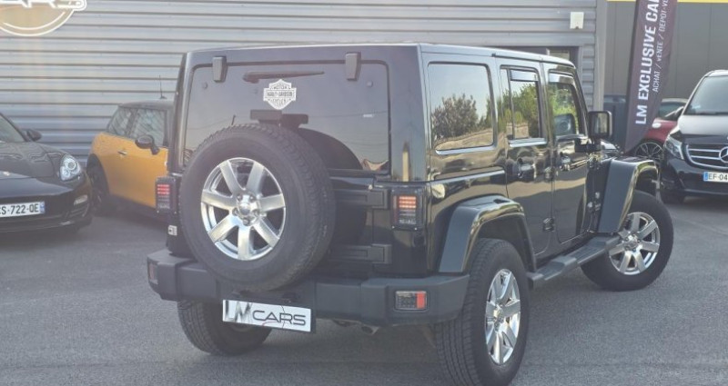 ======= EQUIPEMENTS DE SERIE ======= Aide au démarrage en côte (HSA) Badges extérieurs 70ème Anniversaire Cadrans du tableau de bord avec fonds de couleurs spécifiques Climatisation automatique Élargisseurs d'ailes couleur carrosserie et marchepieds Hard top Freedom Top peint couleur carrosserie Jantes aluminium 18 spécifiques 7 branches Kit mains-libres UConnect compatible Bluetooth® (1) Moteur 2.8 L CRD de 200 ch avec filtre à particules (Euro V) Nouvelle boîte de vitesses automatique séquentielle (5 rapports), disponible en option Ordinateur de bord : température extérieure, boussole, autonomie, totalisateurs partiels Peinture Black ou métallisée Projecteurs à allumage automatique Projecteurs antibrouillard Radio RDS avec changeur 6 CD DVD audio CD MP 3 et 6 HP Infinity avec Subwoofer Rétroviseurs électriques chauffants Sellerie intérieure en cuir spécifique Sièges avant chauffants Système de contrôle de la descente (HDC) Transmission intégrale non permanente Command-Trac avec boîte courte Verrouillage centralisé des portes à distance, vitres électriques Volant gainé de cuir avec commandes audio intégrées Nb. Vitesses : 5 Conso Mixte : l/100