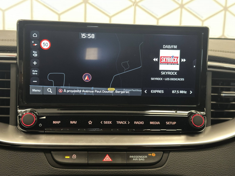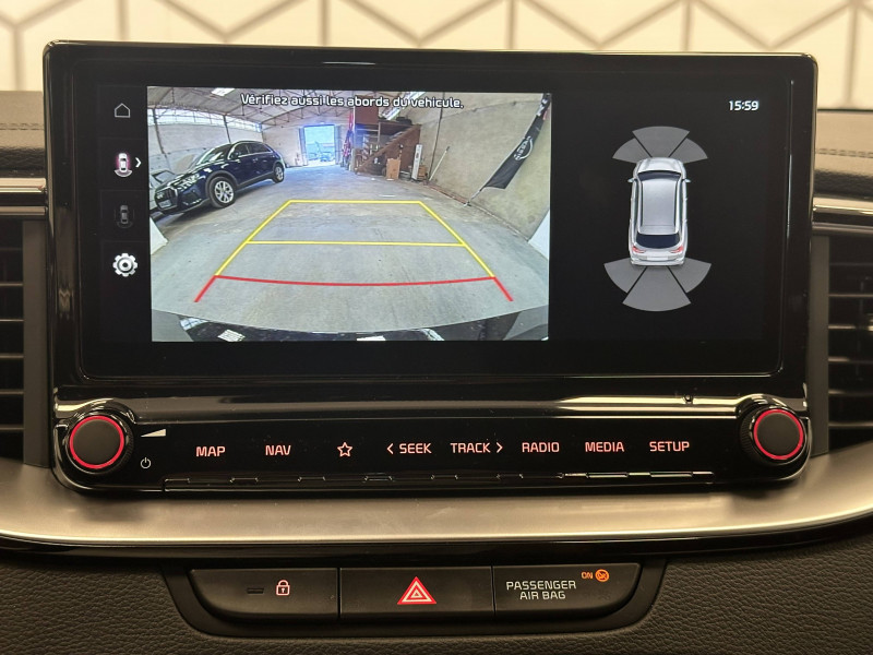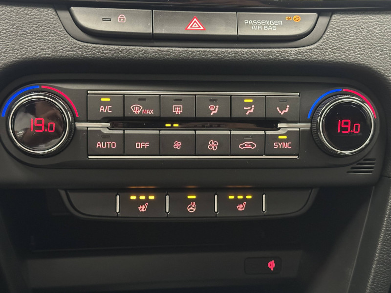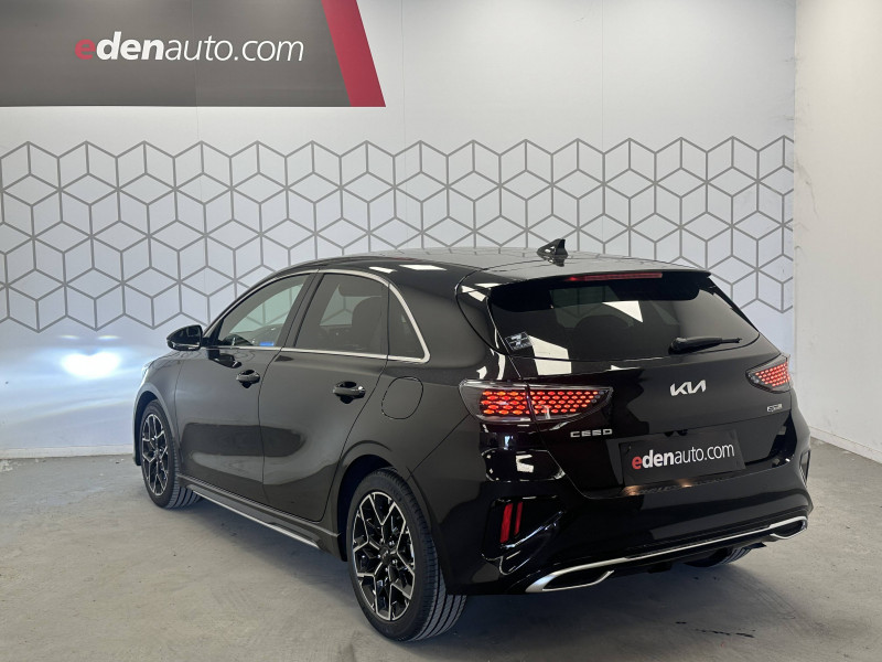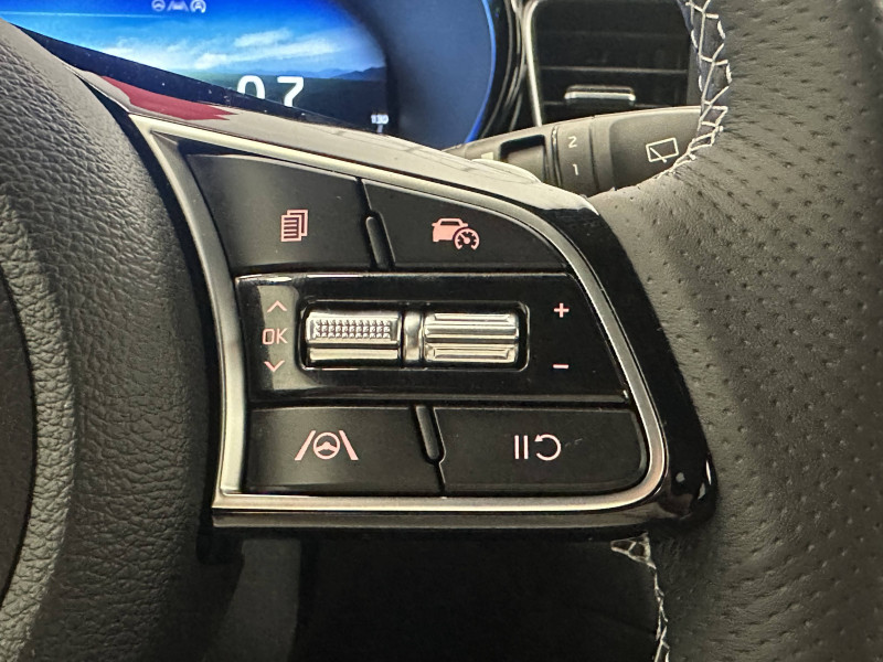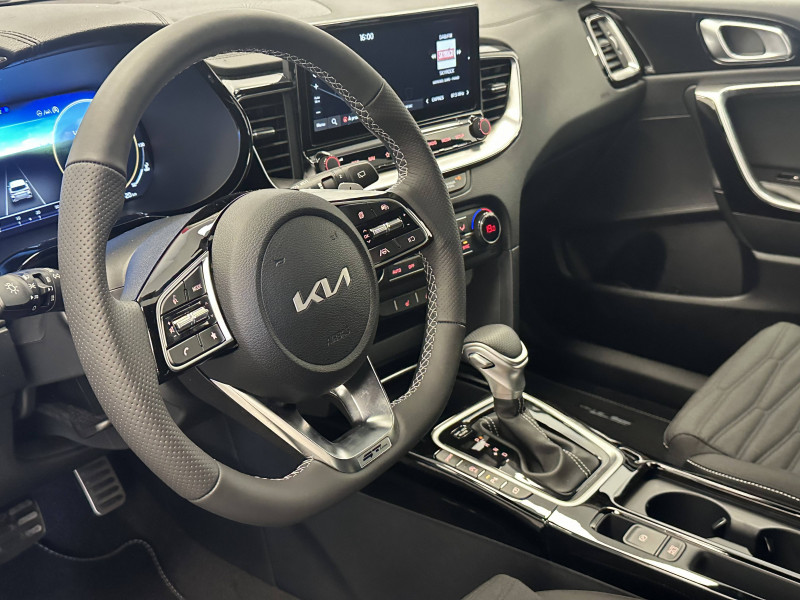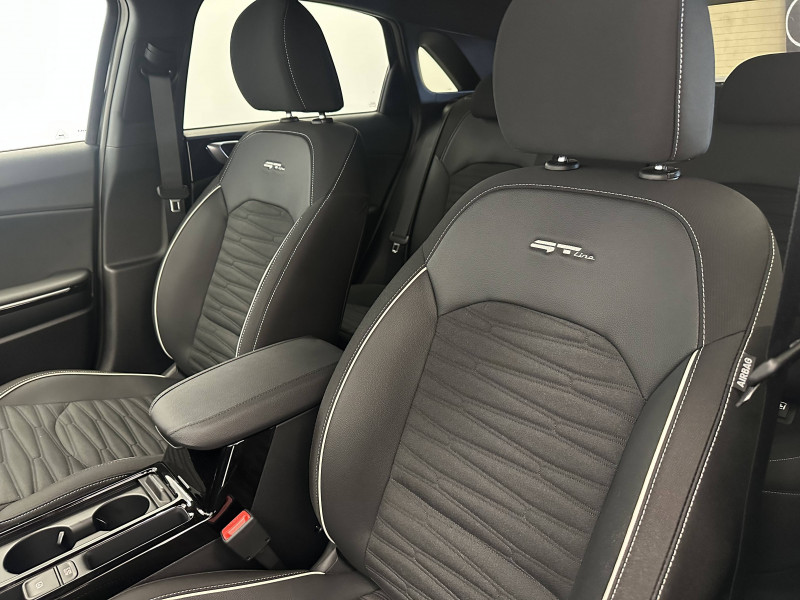 Abonnements Kia Charge Plus et IONITY Power offerts pendant 36 mois / Accoudoir central AR avec porte-gobelets intégrés / Accoudoir central AV coulissant avec compartiment de rangement / Aide au maintien dans la file (LKA) / Alerte de sièges passager AR / Alerte de vigilance du conducteur (DAW+) / Allumage automatique des projecteurs en fonction de la luminosité / Assistance active à la conduite dans les embouteillages (LFA) / Bacs de rangement dans les contre-portes AV et AR / Boîte à double embrayage 7 rapports DCT7 / Boucliers AV/AR / Caméra de recul avec lignes de guidage dynamiques / Combiné d'instrumentation 100 % digital 12.3'' / Compartiment range-lunettes / Connectique USB à AR / Connectique USB à charge rapide à l'AV / Connectique USB à l'AV / Contour de calandre aspect chrome satiné et application noir laqué sur grille de calandre / Contrôle de pression des pneumatiques avec indicateur du niveau de pression (TPMS High Line) / Coques de rétroviseurs couleur noir laqué / Eclairage dans le coffre / Ecran tactile 10,25" compatible Android AutoTM et Apple CarPlayTM avec système de navigation et services connectés Kia Connect Live / ESP (Contrôle électronique de la stabilité) / Extracteurs d'air pour les places AR / Feux AR à LED en forme de nid d'abeille / Inserts noir laqué au niveau des ouïes d'aération du tableau de bord et de la console centrale / Jupes latérales spécifiques GT Line / Kit de dépannage en cas de crevaison / Lève-vitres AV et AR électriques (séquentiel et anti-pincement côté conducteur) / Ligne de vitre chromée / Moulures de bas de portes avec insert gris / Ouverture et démarrage sans clé Smart Key / Pare-soleil avec miroir de courtoisie illuminé (conducteur et passager) / Pédalier et repose-pieds aspect aluminium / Plancher de coffre / Poches aumonières au dos des sièges AV / Poignées de portes extérieures couleur carrosserie / Pommeau de levier de vitesses gainé cuir / Prise 12 V dans le coffre / Prise 12 V sur la partie inférieure de la planche de bord / Prise USB à charge rapide à l'AR / Prise USB à charge rapide sur la partie inférieure de la planche de bord / Reconnaissance des panneaux de limitation avec régulation de vitesse (ISLA) / Rétroviseur intérieur électrochromatique (ECM) / Sélecteur de conduite DRIVE MODE / Sellerie mixte matière synthétique-tissu noir / Siège conducteur à réglages électrique, 4 axes, avec mémorisation / Sièges AV à réglage lombaire électrique / Spots de lecture AV et AR / Système de fixation ISOFIX sur sièges AR latéraux / Système de freinage d'urgence autonome avec détection des voitures, piétons et cyclistes (FCA) / Système de gestion intelligente des feux de route (HBA) / Système de téléphonie mains-libres Bluetooth avec reconnaissance vocale, mode personnalisé et fonction streaming audio / Système Kia Connect - services télématiques offerts pendant 7 ans / Témoin de niveau bas du liquide de lave-glace / Verrouillage automatique des portières en roulant / Volant chauffant / Volant cuir à méplat gainé cuir