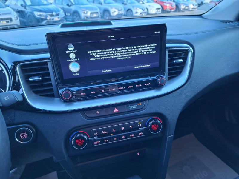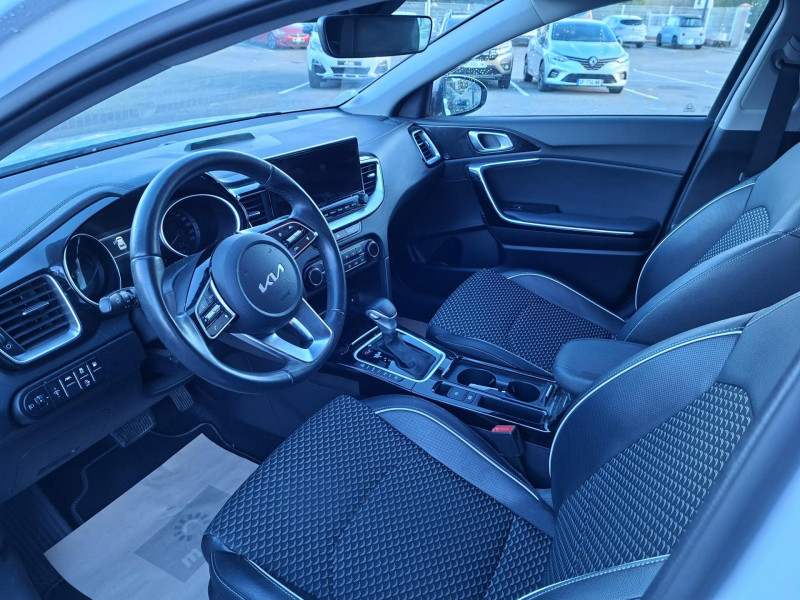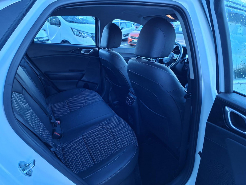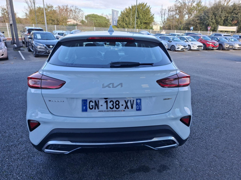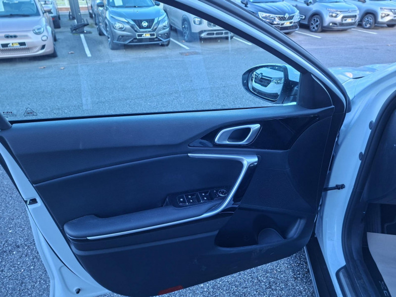 1 prise 12 volts dans le coffre / ABS avec répartiteur électronique de freinage (EBD) / Accoudoir central arrière avec porte-gobelets intégrés / Accoudoir central avant coulissant avec coffre de rangement / Aide au maintien dans la file (LKA) / Assistance active à la conduite dans les embouteillages / Bacs de rangement dans les contre-portes avant et arrière / Bouton "HEV" pour forcer le mode électrique / Cable de recharge pour prise 230v / Caméra de recul avec lignes de guidage actives / Compartiment range-lunettes / Compteur de tableau de bord central "Supervision" TFT LCD 4,2" / Connectique USB à charge rapide (Type-C) avant / arrière / Connexion audio USB / Contour de calandre aspect chrome et application noir chromé sur grille de calandre / Direction à assistance électrique asservie à la vitesse / Eclairage dans le coffre / Ecran tactile couleur 10.25" avec compatibilité Android Auto et Apple CarPlay / Entourage de vitres finition chrome satiné / KiaCharge : service dédié de recharge en itinérance / Kit de dépannage en cas de crevaison / Lève-vitres électriques avant et arrière, séquentiels et antipincement / Ouverture et démarrage sans clé ?Smart Key? / Pare-soleil avec miroir de courtoisie illuminé conducteur et passager / Phares avant Full LED / Plancher de coffre à 2 niveaux / Poches aumônières au dos des sièges avant / Poignées de portes intérieures finition chrome / Prise 12 volts sur la partie inférieure de la planche de bord / Prise USB sur la partie inférieure de la planche de bord / Réglages lombaires électriques sur sièges AV / Rétroviseur intérieur électrochrome / Rétroviseurs extérieurs couleur carrosserie / Radio MP3, 6 haut-parleurs (dont 2 tweeters), avec commandes au volant / Rails de toit / Sélecteur de conduite DRIVE MODE (Normal ou Sport) / Sellerie cuir artificiel/tissu noir / Spoiler arrière avec troisième feu stop à LED / Spots de lecture avant et arrière / Système de contrôle de pression des pneus (TPMS) avec affichage de la pression par pneumatique / Système de freinage d?urgence autonome avec détection des voitures et des piétons (FCA) / Système de freinage d?urgence avec détection des cyclistes / Système de gestion intelligente des feux de route (HBA) / Système de navigation avec cartographie Europe et services connectés Kia Connect Live offerts pendant 7 ans / Système de téléphonie mains-libres Bluetooth avec reconnaissance vocale et fonction streaming audio (selon compatibilité du téléphone) / Système Isofix sur sièges arrière latéraux / Système Kia Connect - services télématiques offerts pendant 7 ans / Témoin d'alerte pour niveau de liquide lave-glace / Verrouillage automatique des portes asservi à la vitesse / Volant et pommeau de levier de vitesses gainés cuir