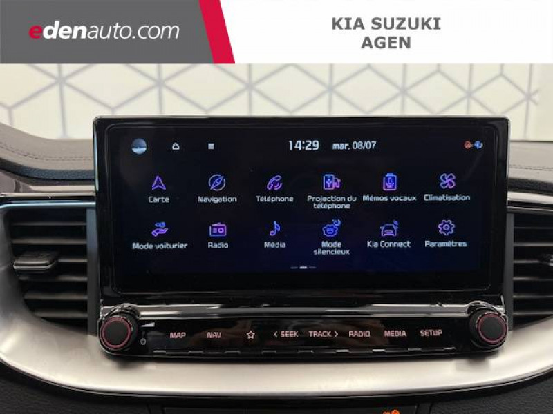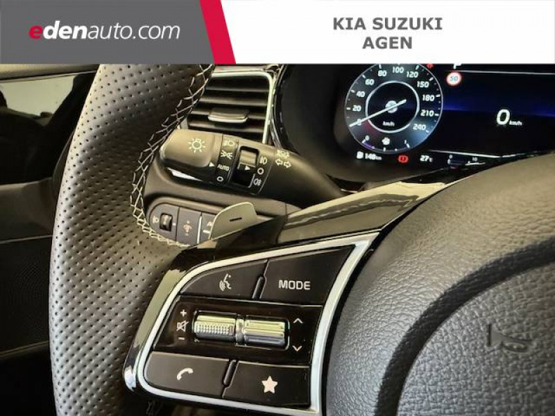 Abonnements Kia Charge Plus et IONITY Power offerts pendant 36 mois / Accoudoir central AR avec porte-gobelets intégrés / Accoudoir central AV coulissant avec compartiment de rangement / Aide au maintien dans la file (LKA) / Alerte de sièges passager AR / Alerte de vigilance du conducteur (DAW+) / Allumage automatique des projecteurs en fonction de la luminosité / Assistance active à la conduite dans les embouteillages (LFA) / Bacs de rangement dans les contre-portes AV et AR / Boucliers AV/AR / Caméra de recul avec lignes de guidage dynamiques / Combiné d'instrumentation 100 % digital 12.3'' / Compartiment range-lunettes / Connectique USB à AR / Connectique USB à charge rapide à l'AV / Connectique USB à l'AV / Contour de calandre aspect chrome satiné et application noir laqué sur grille de calandre / Contrôle de pression des pneumatiques avec indicateur du niveau de pression (TPMS High Line) / Coques de rétroviseurs couleur noir laqué / Eclairage dans le coffre / Ecran tactile 10,25" compatible Android AutoTM et Apple CarPlayTM avec système de navigation et services connectés Kia Connect Live / Extracteurs d'air pour les places AR / Feux AR à LED en forme de nid d'abeille / Inserts noir laqué au niveau des ouïes d'aération du tableau de bord et de la console centrale / Jupes latérales spécifiques GT Line / Kit de dépannage en cas de crevaison / Lève-vitres AV et AR électriques (séquentiel et anti-pincement côté conducteur) / Ligne de vitre chromée / Moulures de bas de portes avec insert gris / Ouverture et démarrage sans clé Smart Key / Pare-soleil avec miroir de courtoisie illuminé (conducteur et passager) / Pédalier et repose-pieds aspect aluminium / Plancher de coffre / Poches aumonières au dos des sièges AV / Poignées de portes extérieures couleur carrosserie / Pommeau de levier de vitesses gainé cuir / Prise 12 V dans le coffre / Prise 12 V sur la partie inférieure de la planche de bord / Prise USB à charge rapide à l'AR / Prise USB à charge rapide sur la partie inférieure de la planche de bord / Reconnaissance des panneaux de limitation avec régulation de vitesse (ISLA) / Rétroviseur intérieur électrochromatique (ECM) / Sélecteur de conduite DRIVE MODE / Sellerie mixte matière synthétique-tissu noir / Siège conducteur à réglages électrique, 4 axes, avec mémorisation / Sièges AV à réglage lombaire électrique / Spots de lecture AV et AR / Système de fixation ISOFIX sur sièges AR latéraux / Système de freinage d'urgence autonome avec détection des voitures, piétons et cyclistes (FCA) / Système de gestion intelligente des feux de route (HBA) / Système de téléphonie mains-libres Bluetooth avec reconnaissance vocale, mode personnalisé et fonction streaming audio / Système Kia Connect - services télématiques offerts pendant 7 ans / Témoin de niveau bas du liquide de lave-glace / Verrouillage automatique des portières en roulant / Volant chauffant / Volant cuir à méplat gainé cuir