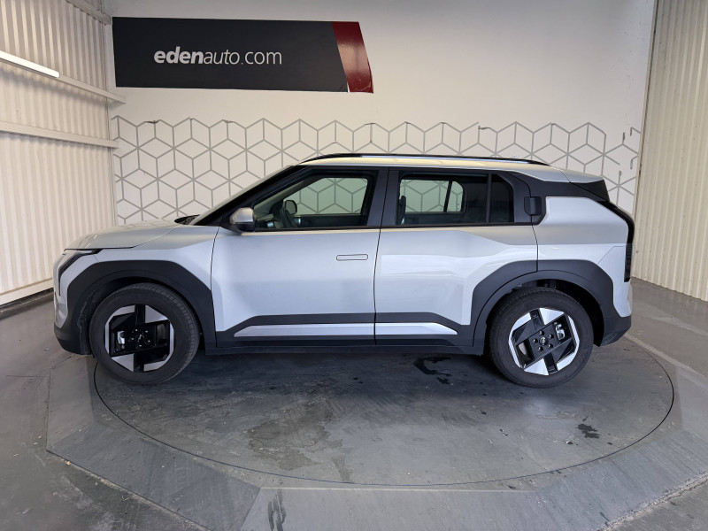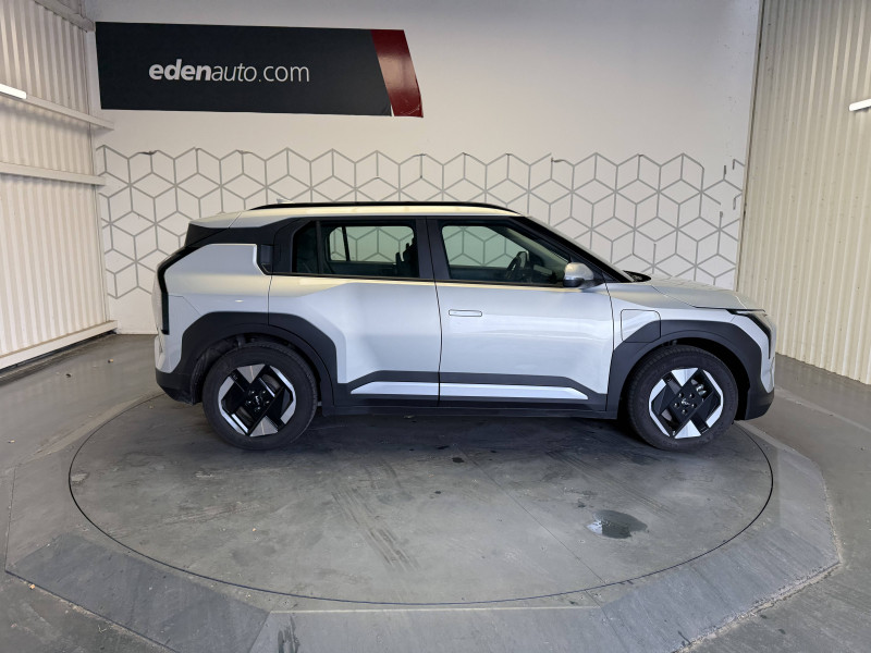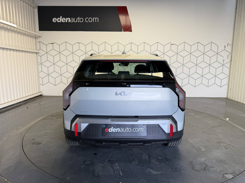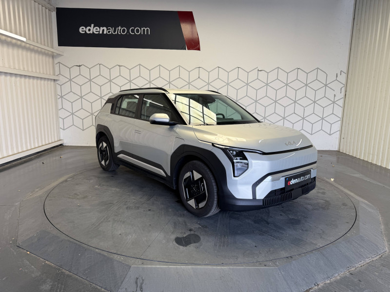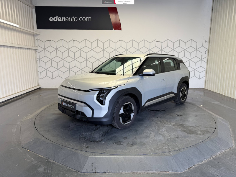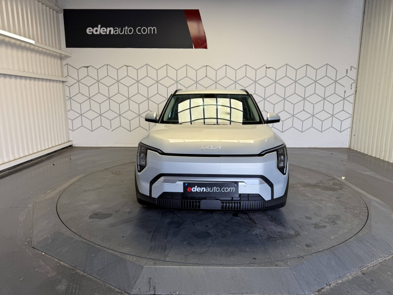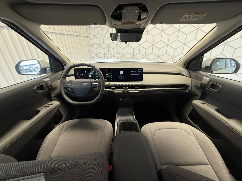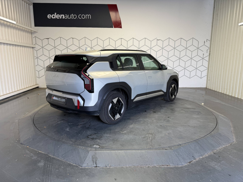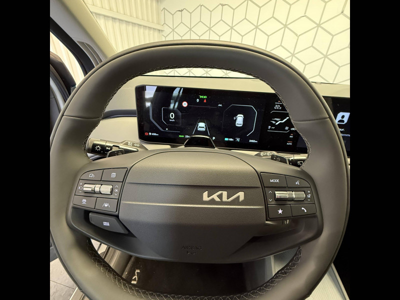 Abonnements Kia Charge Plus et IONITY Power offerts pendant 12 mois / ABS avec répartiteur électronique de freinage (EBD) / Aide au maintien dans la file (LKA) / Alarme antivol / Allumage automatique des projecteurs en fonction de la luminosité / Appuis-tête AV et AR réglables en hauteur et en inclinaison (à l'AV uniquement) / Assistance active à la conduite dans les embouteillages (LFA2) / Assistance active à la conduite sur autoroute (HDA) / Câble de recharge type 2 (T2-T2) 32 A / Caméra de détection de vigilance du conducteur (ICC) / Caméra de recul avec lignes de guidage dynamiques / Carte Kia Charge (accès gratuit au service de recharge et à l'application) / Chargeur embarqué triphasé de 11 kW / Ciel de toit en tissu / Connectique USB-C au dos des sièges conducteur et passager AV / Connectique USB-C sur la partie inférieure du tableau de bord / Console centrale et inserts habitacle Bleu Givré / Contrôle de pression des pneumatiques (TPMS) avec affichage de la pression par pneumatique / Eclairage intérieur à LED / Elargisseurs d'aile en matière recyclée brute / Fonctionnalité de mise à jour à distance "Over-the-Air" avec 2 mises à jour gratuites incluses / Frein de parking électrique (EPB) avec fonction Autohold / Géolocalisation des bornes de recharge via la navigation embarquée et les services connectés Kia Connect Live / Lève-vitres AV et AR électriques, séquentielles et anti-pincement à l'AV / Moulures de bas de porte en couleur carrosserie et argentées / Ouverture et démarrage sans clé "Smart Key" / Palettes de modulation de la puissance de freinage régénératif / Pare-brise avec film acoustique / Plancher de coffre à double niveau / Planificateur intelligent d'itinéraire / Poches aumonières au dos des sièges AV / Poignées de portes affleurantes manuelles / Porte-gobelets AV / Porte-gobelets sur l'accoudoir central pour le second rang / Ports USB-C sur la console centrale et sur les sièges AV / Prise 12 V sur la console centrale / Prise Combo 2 (CCS) / Programmation de la recharge et de la température de l'habitacle / Radars de parking AV/AR / Rails de toit / Reconnaissance des panneaux de limitation avec régulation de vitesse (ISLA) / Régulateur de vitesse adaptatif avec fonction Stop & Go (SCC2) couplé au système de navigation (NSCC-C) et fonction arrêt d'urgence / Rétroviseurs extérieurs peints en couleur carrosserie / Sellerie tissu et laine mélangée / Services télématiques Kia Connect / Solution de recharge pour prise domestique "Mobility Dock" / Système de fixation ISOFIX sur sièges AR latéraux / Système de freinage à récupération d'énergie avec fonction "i-Pedal" / Système de freinage d'urgence autonome avec détection des piétons et des cyclistes (FCA) et fonction d´intersection / Système de freinage multi collision (MCB) / Système de navigation avec cartographie Europe et services connectés Kia Connect Live offerts pendant 7 ans / Système de préchauffage de l'habitacle / Système de pré-conditionnement de la batterie / Système de téléphonie mains-libres Bluetooth avec reconnaissance vocale et fonction streaming audio / Témoin de non-bouclage des ceintures AV et AR / Triple écran panoramique, intégrant un ordinateur de bord Supervision de 12,3", un écran d'affichage des réglages de confort de 5,3"et un écran tactile d'info-divertissement de 12,3" compatible Android Auto et Apple CarPlay sans fil / Verrouillage automatique des portes asservi à la vitesse / Verrouillage de sécurité enfant manuel / Volant à réglage téléscopique manuel / Volant multifonctions à 2 branches habillé de matière synthétique