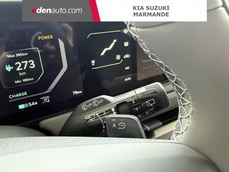 Abonnements Kia Charge Plus et IONITY Power offerts pendant 12 mois / ABS avec répartiteur électronique de freinage (EBD) / Aide au maintien dans la file (LKA) / Alarme antivol / Allumage automatique des projecteurs en fonction de la luminosité / Appuis-tête AV et AR réglables en hauteur et en inclinaison (à l'AV uniquement) / Assistance active à la conduite dans les embouteillages (LFA2) / Assistance active à la conduite sur autoroute (HDA) / Câble de recharge type 2 (T2-T2) 32 A / Caméra de détection de vigilance du conducteur (ICC) / Caméra de recul avec lignes de guidage dynamiques / Carte Kia Charge (accès gratuit au service de recharge et à l'application) / Chargeur embarqué triphasé de 11 kW / Ciel de toit en tissu / Connectique USB-C au dos des sièges conducteur et passager AV / Connectique USB-C sur la partie inférieure du tableau de bord / Console centrale et inserts habitacle Bleu Givré / Contrôle de pression des pneumatiques (TPMS) avec affichage de la pression par pneumatique / Eclairage intérieur à LED / Elargisseurs d'aile en matière recyclée brute / Fonctionnalité de mise à jour à distance "Over-the-Air" avec 2 mises à jour gratuites incluses / Frein de parking électrique (EPB) avec fonction Autohold / Géolocalisation des bornes de recharge via la navigation embarquée et les services connectés Kia Connect Live / Lève-vitres AV et AR électriques, séquentielles et anti-pincement à l'AV / Moulures de bas de porte en couleur carrosserie et argentées / Ouverture et démarrage sans clé "Smart Key" / Palettes de modulation de la puissance de freinage régénératif / Pare-brise avec film acoustique / Plancher de coffre à double niveau / Planificateur intelligent d'itinéraire / Poches aumonières au dos des sièges AV / Poignées de portes affleurantes manuelles / Porte-gobelets AV / Porte-gobelets sur l'accoudoir central pour le second rang / Ports USB-C sur la console centrale et sur les sièges AV / Prise 12 V sur la console centrale / Prise Combo 2 (CCS) / Programmation de la recharge et de la température de l'habitacle / Radars de parking AV/AR / Rails de toit / Reconnaissance des panneaux de limitation avec régulation de vitesse (ISLA) / Régulateur de vitesse adaptatif avec fonction Stop & Go (SCC2) couplé au système de navigation (NSCC-C) et fonction arrêt d'urgence / Rétroviseurs extérieurs peints en couleur carrosserie / Sellerie tissu et laine mélangée / Services télématiques Kia Connect / Solution de recharge pour prise domestique "Mobility Dock" / Système de fixation ISOFIX sur sièges AR latéraux / Système de freinage à récupération d'énergie avec fonction "i-Pedal" / Système de freinage d'urgence autonome avec détection des piétons et des cyclistes (FCA) et fonction d´intersection / Système de freinage multi collision (MCB) / Système de navigation avec cartographie Europe et services connectés Kia Connect Live offerts pendant 7 ans / Système de préchauffage de l'habitacle / Système de pré-conditionnement de la batterie / Système de téléphonie mains-libres Bluetooth avec reconnaissance vocale et fonction streaming audio / Témoin de non-bouclage des ceintures AV et AR / Triple écran panoramique, intégrant un ordinateur de bord Supervision de 12,3", un écran d'affichage des réglages de confort de 5,3"et un écran tactile d'info-divertissement de 12,3" compatible Android Auto et Apple CarPlay sans fil / Verrouillage automatique des portes asservi à la vitesse / Verrouillage de sécurité enfant manuel / Volant à réglage téléscopique manuel / Volant multifonctions à 2 branches habillé de matière synthétique