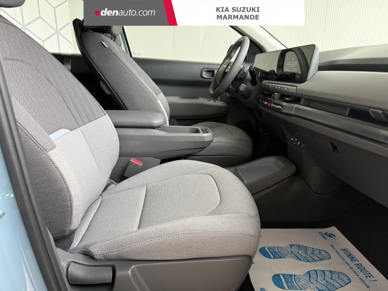 Abonnements Kia Charge Plus et IONITY Power offerts pendant 12 mois / ABS avec répartiteur électronique de freinage (EBD) / Aide au maintien dans la file (LKA) / Alarme antivol / Allumage automatique des projecteurs en fonction de la luminosité / Appuis-tête AV et AR réglables en hauteur et en inclinaison (à l'AV uniquement) / Assistance active à la conduite dans les embouteillages (LFA2) / Assistance active à la conduite sur autoroute (HDA) / Câble de recharge type 2 (T2-T2) 32 A / Caméra de détection de vigilance du conducteur (ICC) / Caméra de recul avec lignes de guidage dynamiques / Carte Kia Charge (accès gratuit au service de recharge et à l'application) / Chargeur embarqué triphasé de 11 kW / Ciel de toit en tissu / Connectique USB-C au dos des sièges conducteur et passager AV / Connectique USB-C sur la partie inférieure du tableau de bord / Console centrale et inserts habitacle Bleu Givré / Contrôle de pression des pneumatiques (TPMS) avec affichage de la pression par pneumatique / Eclairage intérieur à LED / Elargisseurs d'aile en matière recyclée brute / Fonctionnalité de mise à jour à distance "Over-the-Air" avec 2 mises à jour gratuites incluses / Frein de parking électrique (EPB) avec fonction Autohold / Géolocalisation des bornes de recharge via la navigation embarquée et les services connectés Kia Connect Live / Lève-vitres AV et AR électriques, séquentielles et anti-pincement à l'AV / Moulures de bas de porte en couleur carrosserie et argentées / Ouverture et démarrage sans clé "Smart Key" / Palettes de modulation de la puissance de freinage régénératif / Pare-brise avec film acoustique / Plancher de coffre à double niveau / Planificateur intelligent d'itinéraire / Poches aumonières au dos des sièges AV / Poignées de portes affleurantes manuelles / Porte-gobelets AV / Porte-gobelets sur l'accoudoir central pour le second rang / Ports USB-C sur la console centrale et sur les sièges AV / Prise 12 V sur la console centrale / Prise Combo 2 (CCS) / Programmation de la recharge et de la température de l'habitacle / Radars de parking AV/AR / Rails de toit / Reconnaissance des panneaux de limitation avec régulation de vitesse (ISLA) / Régulateur de vitesse adaptatif avec fonction Stop & Go (SCC2) couplé au système de navigation (NSCC-C) et fonction arrêt d'urgence / Rétroviseurs extérieurs peints en couleur carrosserie / Sellerie tissu et laine mélangée / Services télématiques Kia Connect / Solution de recharge pour prise domestique "Mobility Dock" / Système de fixation ISOFIX sur sièges AR latéraux / Système de freinage à récupération d'énergie avec fonction "i-Pedal" / Système de freinage d'urgence autonome avec détection des piétons et des cyclistes (FCA) et fonction d´intersection / Système de freinage multi collision (MCB) / Système de navigation avec cartographie Europe et services connectés Kia Connect Live offerts pendant 7 ans / Système de préchauffage de l'habitacle / Système de pré-conditionnement de la batterie / Système de téléphonie mains-libres Bluetooth avec reconnaissance vocale et fonction streaming audio / Témoin de non-bouclage des ceintures AV et AR / Triple écran panoramique, intégrant un ordinateur de bord Supervision de 12,3", un écran d'affichage des réglages de confort de 5,3"et un écran tactile d'info-divertissement de 12,3" compatible Android Auto et Apple CarPlay sans fil / Verrouillage automatique des portes asservi à la vitesse / Verrouillage de sécurité enfant manuel / Volant à réglage téléscopique manuel / Volant multifonctions à 2 branches habillé de matière synthétique