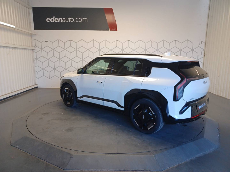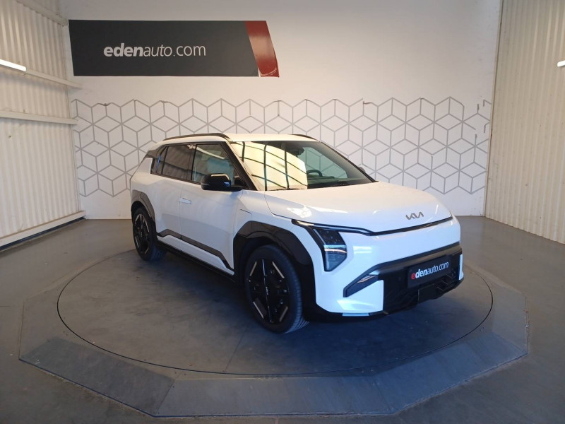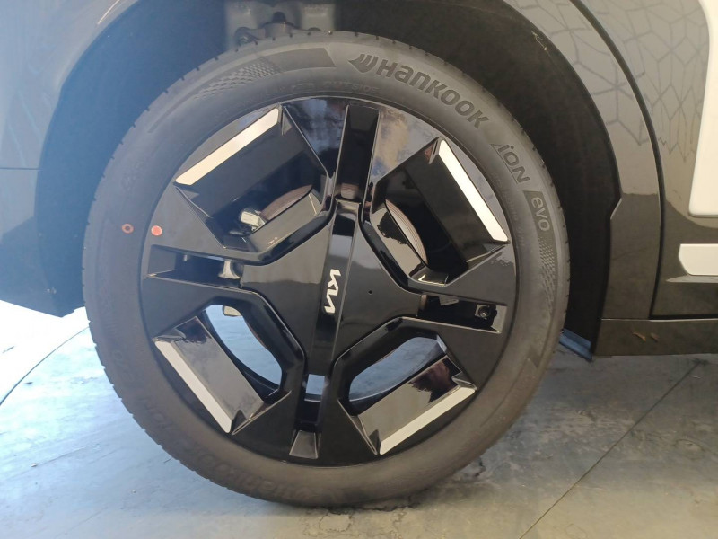 Abonnements Kia Charge Plus et IONITY Power offerts pendant 12 mois / ABS avec répartiteur électronique de freinage (EBD) / Aide au maintien dans la file (LKA) / Alarme antivol / Allumage automatique des projecteurs en fonction de la luminosité / Appuie-tête en tissu type nid d'abeille / Appuis-tête AV et AR réglables en hauteur et en inclinaison (à l'AV uniquement) / Assistance active à la conduite dans les embouteillages (LFA) / Assistance active à la conduite sur autoroute niveau 2 avec détection des mains sur volant (HDA 2.0 avec HOD) / Batterie à autonomie longue (81,4 kWh) / Boîte de vitesses mono rapport à réducteur / Boucliers AV/AR GT-line / Câble de recharge type 2 (T2-T2) 32 A / Caméra de détection de vigilance du conducteur (ICC) / Caméra de recul avec lignes de guidage dynamiques / Carte Kia Charge (accès gratuit au service de recharge et à l'application) / Chargeur embarqué triphasé de 11 kW / Clé digitale 2.0 avec déverrouillage et démarrage via smartphone compatible / Connectique USB-C au dos des sièges conducteur et passager AV / Connectique USB-C sur la partie inférieure du tableau de bord / Console centrale et inserts habitacle Noir Abysse / Contour des vitres latérales noir brillant / Contrôle de traction (TCS) / Coques de rétroviseurs extérieurs peintes en noir brillant / Couleur de contraste intérieur Bleu Givré / Eclairage d'ambiance personnalisable et dynamique / Eclairage intérieur à LED / Elargisseurs d'aile en matière recyclée peinte en noir brillant / Feux arrière Full LED à signature "Constellation" / Fonctionnalité d'éclairage de bienvenue dynamique / Fonctionnalité de mise à jour à distance "Over-the-Air" avec 2 mises à jour gratuites incluses / Frein de parking électrique (EPB) avec fonction Autohold / Géolocalisation des bornes de recharge via la navigation embarquée et les services connectés Kia Connect Live / Habillage extérieur effet chrome / Hayon électrique à ouverture mains-libres / Inserts latéraux couleur carrosserie avec ceinture de caisse noir brilliant / Lève-vitres AV et AR électriques, séquentielles et anti-pincement à l'AV / Moulures de bas de porte en couleur carrosserie spécifiques GT-line / Ouverture et démarrage sans clé "Smart Key" / Palettes de modulation de la puissance de freinage régénératif / Pare-brise avec film acoustique / Pare-soleil avec miroir de courtoisie illuminé (conducteur et passager) / Pédalier finition aluminium / Peinture Frost Blue / Plancher de coffre à double niveau / Planificateur intelligent d'itinéraire / Poches aumonières au dos des sièges AV / Poignées de porte escamotables électriquement / Poignées de portes affleurantes automatiques / Porte-gobelets AV / Porte-gobelets sur l'accoudoir central pour le second rang / Ports USB-C sur la console centrale et sur les sièges AV / Prise 12 V sur la console centrale / Prise Combo 2 (CCS) / Programmation de la recharge et de la température de l'habitacle / Projecteurs à LED, 12 cubes avec fonctionnalité d'éclairage de bienvenue / Radars de parking AV/AR / Rails de toit / Reconnaissance des panneaux de limitation avec régulation de vitesse (ISLA) / Régulateur de vitesse adaptatif avec fonction Stop & Go (SCC2) couplé au système de navigation (NSCC-C) et fonction arrêt d'urgence / Rétroviseur intérieur électrochrome / Sellerie en matière synthétique biosourcée GT-line / Services télématiques Kia Connect / Siège conducteur réglable électriquement avec réglage lombaires électriques / Solution de recharge pour prise domestique "Mobility Dock" / Système anticollision avec détection des angles morts (BCA) / Système audio premium Harman Kardon comprenant 8 HP dont 2 tweeters, un caisson de basses et un amplificateur externe / Système de fixation ISOFIX sur sièges AR latéraux / Système de freinage à récupération d'énergie avec fonction "i-Pedal" / Système de freinage d'urgence autonome avec détection des piétons et des cyclistes (FCA 2) fonction d'intersection et de croisement / Système de freinage multi collision (MCB) / Système de navigation avec cartographie Europe et services connectés Kia Connect Live offerts pendant 7 ans / Système de préchauffage de l'habitacle / Système de pré-conditionnement de la batterie / Système de téléphonie mains-libres Bluetooth avec reconnaissance vocale et fonction streaming audio / Témoin de non-bouclage des ceintures AV et AR / Triple écran panoramique, intégrant un ordinateur de bord Supervision de 12,3", un écran d'affichage des réglages de confort de 5,3" et un écran tactile d'info-divertissement de 12,3" compatible Android Auto et Apple CarPlay sans fil / Verrouillage automatique des portes asservi à la vitesse / Verrouillage de sécurité enfant manuel / Volant à réglage téléscopique manuel / Volant chauffant / Volant multifonctions GT-line à 3 branches habillé de matière synthétique