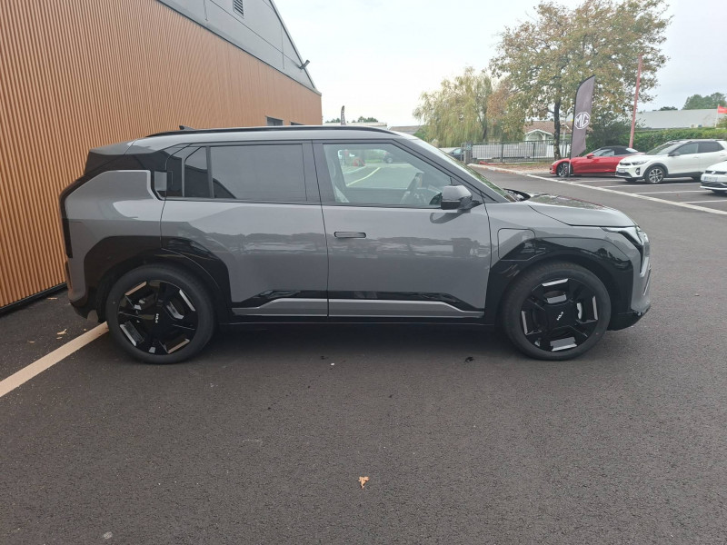 Abonnements Kia Charge Plus et IONITY Power offerts pendant 12 mois / ABS avec répartiteur électronique de freinage (EBD) / Aide au maintien dans la file (LKA) / Alarme antivol / Allumage automatique des projecteurs en fonction de la luminosité / Appuie-tête en tissu type nid d'abeille / Appuis-tête AV et AR réglables en hauteur et en inclinaison (à l'AV uniquement) / Assistance active à la conduite dans les embouteillages (LFA2) / Assistance active à la conduite sur autoroute niveau 2 avec détection des mains sur volant (HDA 2.0 avec HOD) / Batterie à autonomie longue (81,4 kWh) / Boîte de vitesses mono rapport à réducteur / Boucliers AV/AR GT-line / Câble de recharge type 2 (T2-T2) 32 A / Caméra de détection de vigilance du conducteur (ICC) / Caméra de recul avec lignes de guidage dynamiques / Carte Kia Charge (accès gratuit au service de recharge et à l'application) / Chargeur embarqué triphasé de 11 kW / Clé digitale 2.0 avec déverrouillage et démarrage via smartphone compatible / Connectique USB-C au dos des sièges conducteur et passager AV / Connectique USB-C sur la partie inférieure du tableau de bord / Console centrale et inserts habitacle Noir Abysse / Contour des vitres latérales noir brillant / Contrôle de traction (TCS) / Coques de rétroviseurs extérieurs peintes en noir brillant / Couleur de contraste intérieur Bleu Givré / Eclairage d'ambiance personnalisable et dynamique / Eclairage intérieur à LED / Elargisseurs d'aile en matière recyclée peinte en noir brillant / Feux arrière Full LED à signature "Constellation" / Fonctionnalité d'éclairage de bienvenue dynamique / Fonctionnalité de mise à jour à distance "Over-the-Air" avec 2 mises à jour gratuites incluses / Frein de parking électrique (EPB) avec fonction Autohold / Géolocalisation des bornes de recharge via la navigation embarquée et les services connectés Kia Connect Live / Habillage extérieur effet chrome / Hayon électrique à ouverture mains-libres / Inserts latéraux couleur carrosserie avec ceinture de caisse noir brilliant / Lève-vitres AV et AR électriques, séquentielles et anti-pincement à l'AV / Moulures de bas de porte en couleur carrosserie spécifiques GT-line / Ouverture et démarrage sans clé "Smart Key" / Palettes de modulation de la puissance de freinage régénératif / Pare-brise avec film acoustique / Pare-soleil avec miroir de courtoisie illuminé (conducteur et passager) / Pédalier finition aluminium / Peinture Frost Blue / Plancher de coffre à double niveau / Planificateur intelligent d'itinéraire / Poches aumonières au dos des sièges AV / Poignées de porte escamotables électriquement / Poignées de portes affleurantes automatiques / Porte-gobelets AV / Porte-gobelets sur l'accoudoir central pour le second rang / Ports USB-C sur la console centrale et sur les sièges AV / Prise 12 V sur la console centrale / Prise Combo 2 (CCS) / Programmation de la recharge et de la température de l'habitacle / Projecteurs à LED, 12 cubes avec fonctionnalité d'éclairage de bienvenue / Radars de parking AV/AR / Rails de toit / Reconnaissance des panneaux de limitation avec régulation de vitesse (ISLA) / Régulateur de vitesse adaptatif avec fonction Stop & Go (SCC2) couplé au système de navigation (NSCC-C) et fonction arrêt d'urgence / Rétroviseur intérieur électrochrome / Sellerie en matière synthétique biosourcée GT-line / Services télématiques Kia Connect / Siège conducteur réglable électriquement avec réglage lombaires électriques / Solution de recharge pour prise domestique "Mobility Dock" / Système anticollision avec détection des angles morts (BCA) / Système audio premium Harman Kardon comprenant 8 HP dont 2 tweeters, un caisson de basses et un amplificateur externe / Système de fixation ISOFIX sur sièges AR latéraux / Système de freinage à récupération d'énergie avec fonction "i-Pedal" / Système de freinage d'urgence autonome avec détection des piétons et des cyclistes (FCA 2) fonction d'intersection et de croisement / Système de freinage multi collision (MCB) / Système de navigation avec cartographie Europe et services connectés Kia Connect Live offerts pendant 7 ans / Système de préchauffage de l'habitacle / Système de pré-conditionnement de la batterie / Système de téléphonie mains-libres Bluetooth avec reconnaissance vocale et fonction streaming audio / Témoin de non-bouclage des ceintures AV et AR / Triple écran panoramique, intégrant un ordinateur de bord Supervision de 12,3", un écran d'affichage des réglages de confort de 5,3" et un écran tactile d'info-divertissement de 12,3" compatible Android Auto et Apple CarPlay sans fil / Verrouillage automatique des portes asservi à la vitesse / Verrouillage de sécurité enfant manuel / Volant à réglage téléscopique manuel / Volant chauffant / Volant multifonctions GT-line à 3 branches habillé de matière synthétique