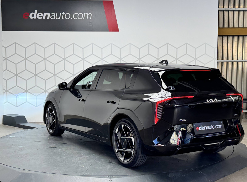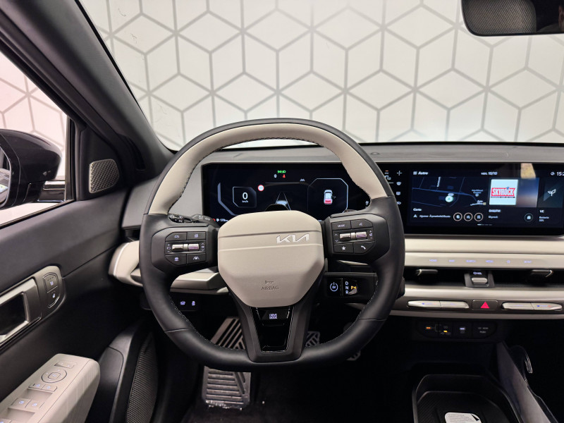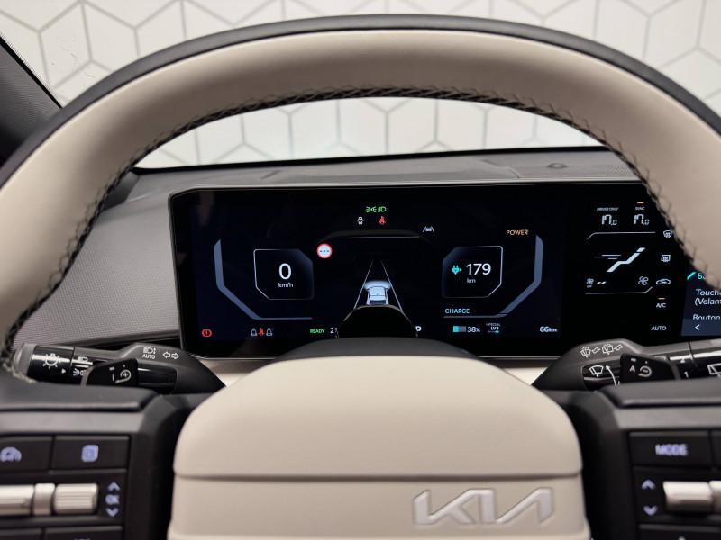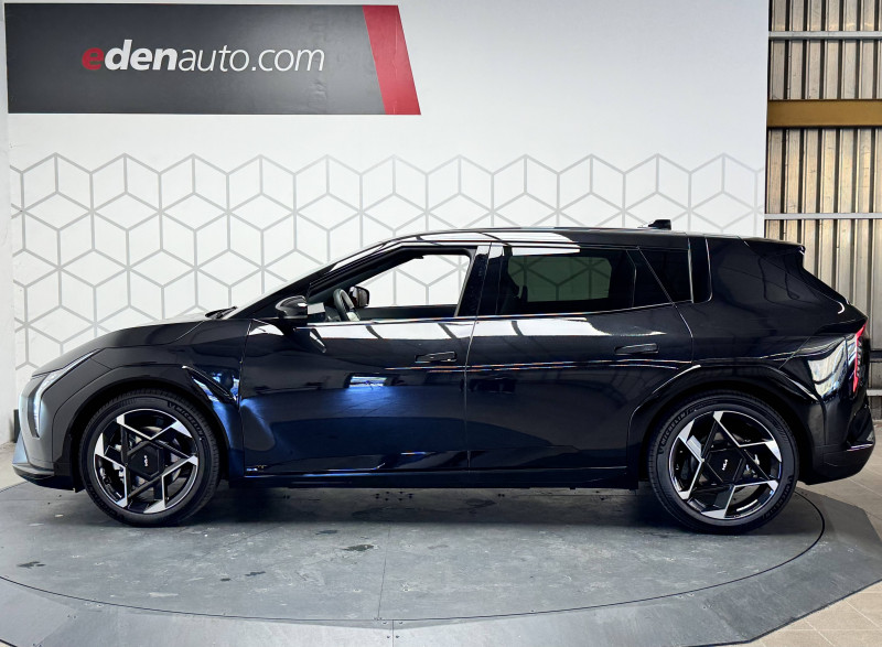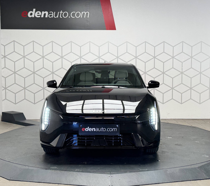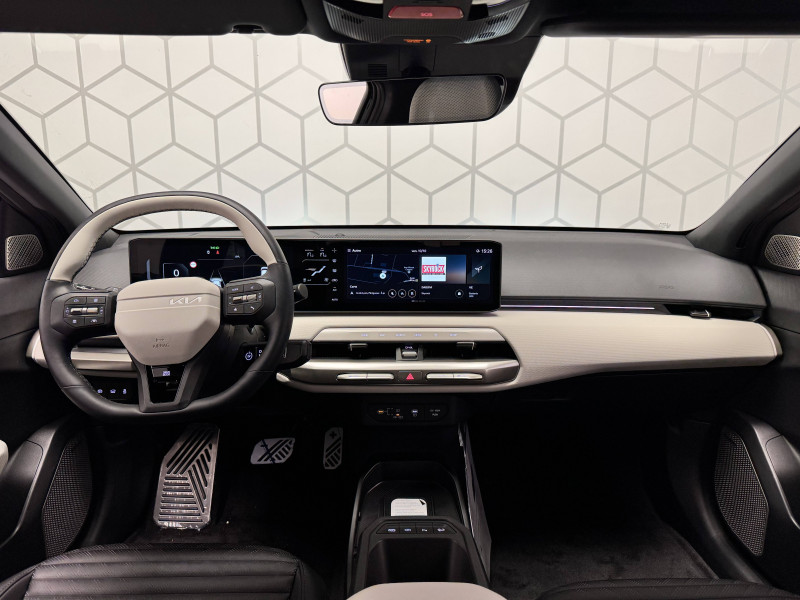 ABS avec répartiteur électronique de freinage (EBD) / Aide au maintien dans la file (LKA) / Allumage automatique des projecteurs en fonction de la luminosité / Appuie-têtes en matière recyclée et biosourcée / Appuis-tête AV et AR réglables en hauteur et en inclinaison (à l'AV uniquement) / Assistance active à la conduite sur autoroute niveau 2 avec détection des mains sur volant (HDA 2.0 avec HOD) / Boîte de vitesses mono rapport à réducteur / Buses de ventilation pour la deuxième rangée / Câble de recharge pour prise domestique 230V / Câble de recharge type 2 (T2-T2) 32A / Caméra de détection de vigilance du conducteur (ICC) / Caméra de recul avec lignes de guidage dynamiques (RVM) / Carte Kia Charge (accès gratuit au service de recharge et à l'application) / Chargeur embarqué triphasé de 11 kW / Clé digitale 2.0 avec déverrouillage et démarrage via smartphone compatible ou montre connectée compatible / Commandes vocales pour Assistant IA Kia / Connectique USB-C au dos des sièges conducteur et passager AV / Connectique USB-C sur la partie inférieure du tableau de bord / Console centrale flottante avec accoudoir / Contour des vitres latérales noir brillant / Contrôle de la pression des pneumatiques (TPMS) avec affichage de la pression par pneumatique / Contrôle de traction (TCS) / Eclairage d'ambiance personnalisable et dynamique / Eclairage intérieur à LED / Elargisseurs d'aile en matière recyclée peinte en noir brillant / Feux AR à LED avec signature "Star Map" / Fonctionnalité d'éclairage dynamique (Welcome Light / Escort Light) / Fonctionnalité de mise à jour à distance "Over-the-Air" avec 2 mises à jour gratuites incluses / Frein de parking électrique (EPB) avec fonction Autohold / Géolocalisation des bornes de recharge via la navigation embarquée et les services connectés Kia Connect Live / Hayon électrique à ouverture mains-libres / Insert noir type "Targa" sur le montant C / Jantes en alliage 19'' 215/50 R19 (97H) / Kit de réparation anti-crevaison / Lève-vitres AV et AR électriques, séquentielles et anti-pincement à l'AV / Moulures de bas de porte noiores spécifiques GT-line / Ouverture et démarrage sans clé Smart Key / Palettes de modulation de la puissance de freinage régénératif / Pare-chocs AV couleur carrosserie et motif de calandre spécifique GT-Line / Pare-soleil avec miroir de courtoisie illuminé (conducteur et passager) / Pédalier finition aluminium / Peinture opaque / Plancher de coffre à double niveau / Planificateur intelligent d'itinéraire / Poches aumonières au dos des sièges AV / Poignées de porte affleurantes automatiques (couleur carrosserie) / Porte-gobelets AV / Porte-gobelets sur l'accoudoir central pour le second rang / Prise 12 V sur la console centrale / Prise Combo 2 (CCS) pour de la recharge rapide / Programmation de la recharge et de la température de l'habitacle / Projecteurs AV et AR à LED / Projecteurs AV matriciels à LED (12 Cubes) avec gestion adaptative des feux de route / Radars de parking AV, AR et latéraux (PDW) / Reconnaissance des panneaux de limitation avec régulation de vitesse (ISLA) / Régulateur de vitesse adaptatif avec fonction Stop & Go (SCC2) couplé au système de navigation (NSCC-C) et fonction arrêt d'urgence / Rétroviseur intérieur électrochromatique / Sélecteur de mode de conduite (Normal, Eco, Sport, My Drive, Snow) / Sellerie en matière synthétique biosourcée GT-line / Services télématiques Kia Connect offerts pendant 7 ans / Sièges AV avec ajustement et réglages lombaires électriques / Solution de recharge pour prise domestique 230V (adaptateur pour câble T2-T2) / Système anticollision avec détection des angles morts (BCA) / Système de fixation ISOFIX sur sièges AR latéraux / Système de freinage à récupération d'énergie avec fonction "i-Pedal 3.0" / Système de freinage d'urgence autonome avec détection des piétons et des cyclistes (FCA 2) fonction d'intersection et de croisement / Système de freinage multi collision (MCB) / Système de navigation avec cartographie Europe et services connectés Kia Connect Live offerts pendant 7 ans / Système de préchauffage de l'habitacle / Système de pré-conditionnement de la batterie (assure une température optimale pour la charge rapide par temps chaud ou froid) / Système de téléphonie mains-libres Bluetooth avec reconnaissance vocale et fonction streaming audio / Témoin de non-bouclage des ceintures AV et AR / Triple écran panoramique, intégrant un combiné d'instrumentation « Supervision » de 12,3, un écran d'affichage des réglages de confort de 5,3 et un écran tactile d'info-divertissement de 12,3, compatible Android Auto et Apple CarPlay sans fil / Verrouillage automatique des portes asservi à la vitesse / Verrouillage de sécurité enfant automatique / Volant à réglage téléscopique manuel / Volant chauffant / Volant multifonctions GT-line à 3 branches habillé de matière synthétique