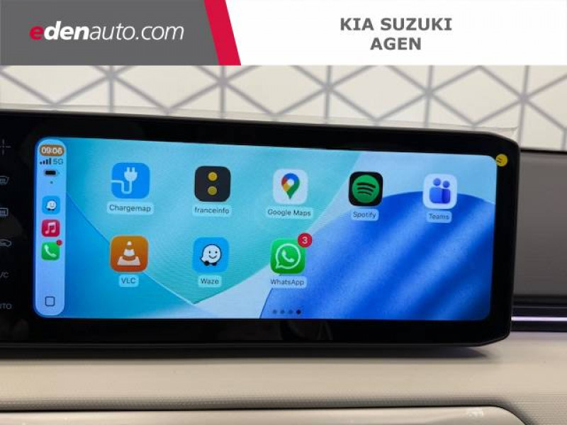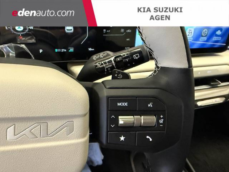 ABS avec répartiteur électronique de freinage (EBD) / Accès et démarrage sans clé (Smart Key) / Aide au maintien dans la file (LKA) / Allumage automatique des projecteurs en fonction de la luminosité / Appuie-têtes en matière recyclée et biosourcée / Appuis-tête AV et AR réglables en hauteur et en inclinaison (à l'AV uniquement) / Assistance active à la conduite sur autoroute niveau 2 avec détection des mains sur volant (HDA 2.0 avec HOD) / Boîte de vitesses mono rapport à réducteur / Buses de ventilation pour la deuxième rangée / Câble de recharge pour prise domestique 230V / Câble de recharge type 2 (T2-T2) 32A / Caméra de détection de vigilance du conducteur (ICC) / Caméra de recul avec lignes de guidage dynamiques (RVM) / Carte Kia Charge (accès gratuit au service de recharge et à l'application) / Chargeur embarqué triphasé de 11 kW / Clé digitale 2.0 avec déverrouillage et démarrage via smartphone compatible ou montre connectée compatible / Commandes vocales pour Assistant IA Kia / Connectique USB-C à l'AV de la console centrale / Connectique USB-C au dos des sièges conducteur et passager AV / Console centrale flottante avec accoudoir / Contour des vitres latérales noir brillant / Contrôle de la pression des pneumatiques (TPMS) avec affichage de la pression par pneumatique / Contrôle de traction (TCS) / Eclairage d'ambiance personnalisable et dynamique / Eclairage intérieur à LED / Elargisseurs d'aile en matière recyclée peinte en noir brillant / Feux AR à LED avec signature "Star Map" / Fonctionnalité d'éclairage dynamique (Welcome Light / Escort Light) / Fonctionnalité de mise à jour à distance "Over-the-Air" avec 2 mises à jour gratuites incluses / Fonction "Plug & Charge" (selon compatibilité avec les opérateurs de bornes de recharge) / Frein de parking électrique (EPB) avec fonction Autohold / Géolocalisation des bornes de recharge via la navigation embarquée et les services connectés Kia Connect Live / Hayon électrique à ouverture mains-libres / Insert noir type "Targa" sur le montant C / Jantes en alliage 19'' 215/50 R19 (97H) / Kit de réparation anti-crevaison / Lève-vitres AV et AR électriques, séquentielles et anti-pincement à l'AV / Moulures de bas de porte noiores spécifiques GT-line / Palettes de modulation de la puissance de freinage régénératif / Pare-chocs AV couleur carrosserie et motif de calandre spécifique GT-Line / Pare-soleil avec miroir de courtoisie illuminé (conducteur et passager) / Pédalier finition aluminium / Peinture opaque / Plancher de coffre à double niveau / Planificateur intelligent d'itinéraire / Poches aumônières au dos des sièges AV / Poignées de porte affleurantes électriques / Porte-gobelets AV / Porte-gobelets sur l'accoudoir central pour le second rang / Prise 12 V sur la console centrale / Prise Combo 2 (CCS) pour de la recharge rapide / Programmation de la recharge et de la température de l'habitacle / Projecteurs AV et AR à LED / Projecteurs AV matriciels à LED (12 Cubes) avec gestion adaptative des feux de route / Radars de parking AV, AR et latéraux (PDW) / Reconnaissance des panneaux de limitation avec régulation de vitesse (ISLA) / Régulateur de vitesse adaptatif avec fonction Stop & Go (SCC2) couplé au système de navigation (NSCC-C) et fonction arrêt d'urgence / Rétroviseur intérieur électrochromatique / Sélecteur de mode de conduite (Normal, Eco, Sport, My Drive, Snow) / Sellerie en matière synthétique biosourcée GT-line / Service de recharge publique Kia Charge pour accéder à près d'un million de points de recharge en Europe / Services télématiques Kia Connect offerts pendant 7 ans / Sièges AV avec ajustement et réglages lombaires électriques / Solution de recharge pour prise domestique "Mobility Dock" / Système anticollision avec détection des angles morts (BCA) / Système de fixation ISOFIX sur sièges AR latéraux / Système de freinage à récupération d'énergie avec fonction "i-Pedal 3.0" / Système de freinage d'urgence autonome avec détection des piétons et des cyclistes (FCA 2) fonction d'intersection et de croisement / Système de freinage multi collision (MCB) / Système de navigation avec cartographie Europe et services connectés Kia Connect Live offerts pendant 7 ans / Système de préchauffage de l'habitacle / Système de pré-conditionnement de la batterie (assure une température optimale pour la charge rapide par temps chaud ou froid) / Système de téléphonie mains-libres Bluetooth avec reconnaissance vocale et fonction streaming audio / Témoin de non-bouclage des ceintures AV et AR / Triple écran panoramique, intégrant un combiné d'instrumentation « Supervision » de 12,3, un écran d'affichage des réglages de confort de 5,3 et un écran tactile d'info-divertissement de 12,3, compatible Android Auto et Apple CarPlay sans fil / Verrouillage automatique des portes asservi à la vitesse / Verrouillage de sécurité enfant automatique / Volant à réglage téléscopique manuel / Volant chauffant / Volant multifonctions GT-line à 3 branches habillé de matière synthétique
