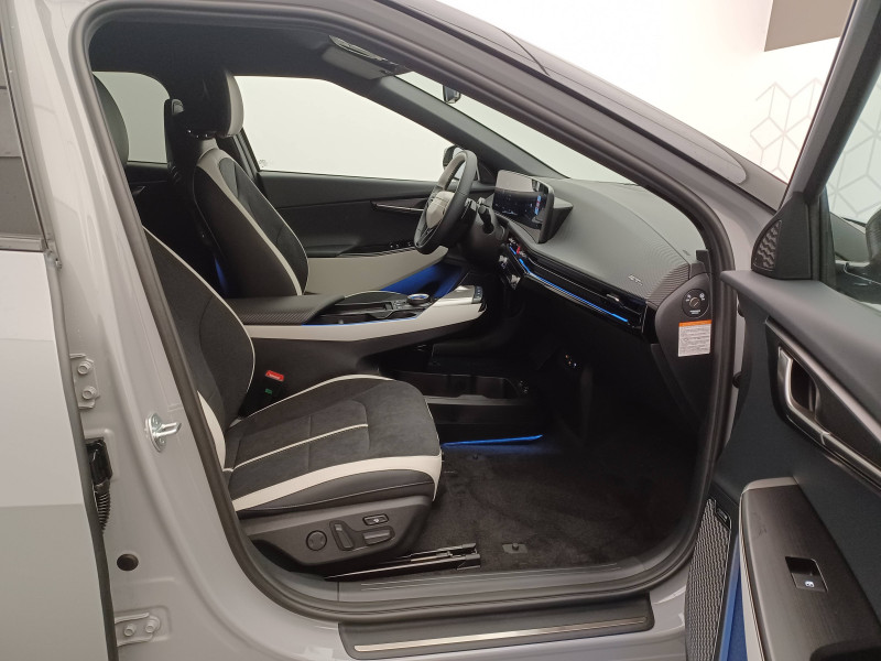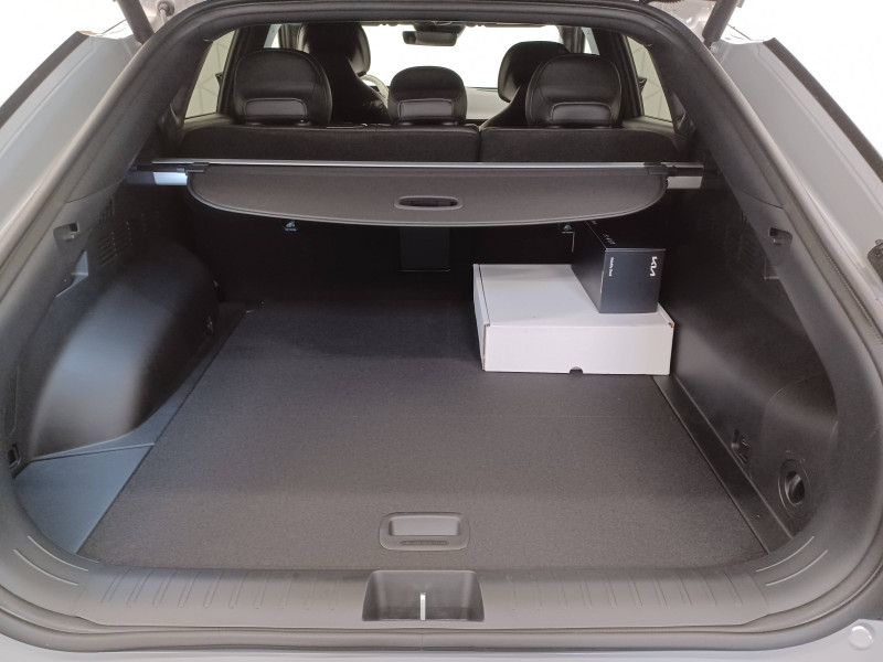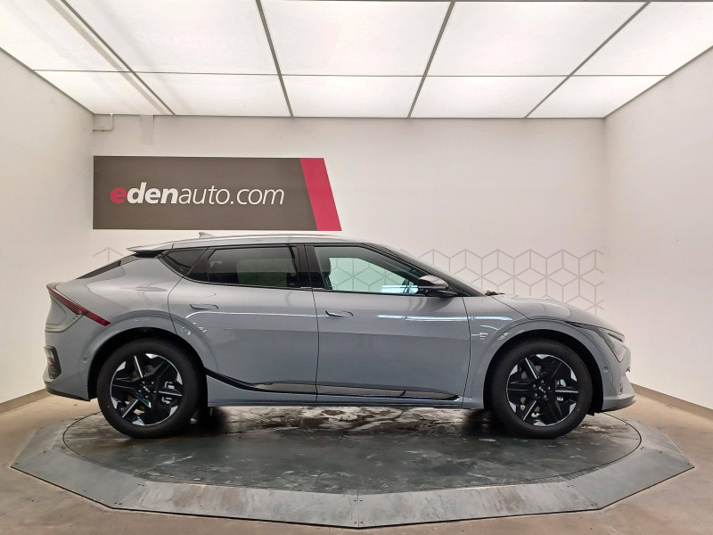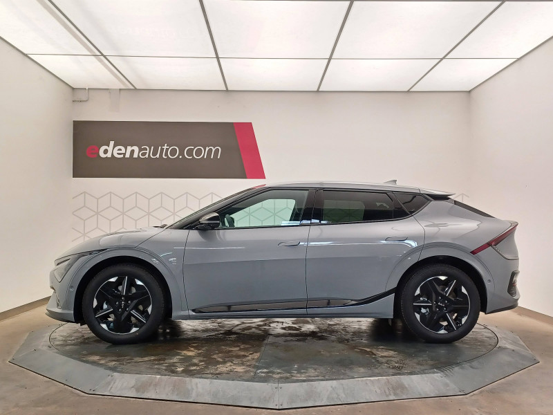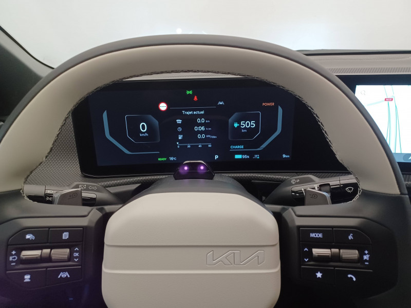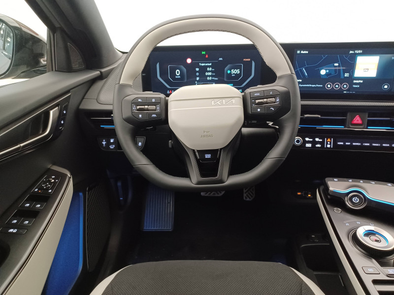 Abonnements Kia Charge Plus et IONITY Power offerts pendant 12 mois / ABS avec répartiteur électronique de freinage (EBD) / Accoudoir central AR avec porte-gobelets intégrés / Aide au maintien dans la file (LKA) / Airbags frontaux, latéraux AV, rideaux et latéral central entre conducteur et passager AV / Alerte de vigilance du conducteur (DAW) / Allumage automatique des projecteurs en fonction de la luminosité / Assistance active à la conduite dans les embouteillages (LFA) / Assistance active à la conduite sur autoroute (HDA) / Assistance active au stationnement à distance avec parking en épi (RSPA 2.0) / Bandeau lumineux AV / Bandeau lumineux LED AR / Boîte de vitesses mono rapport à réducteur / Boucliers AV/AR GT-line / Bouton d'appel d'urgence eCall du véhicule / Buse de ventilation pour la 2ème rangée / Câble de recharge pour prise domestique 230V / Câble de recharge type 2 (T2-T2) 32 A / Caméra de détection de vigilance du conducteur (ICC) / Carte Kia Charge (accès gratuit au service de recharge et à l'application) / Chargeur embarqué triphasé de 11 kW / Clé digitale 2.0 / Clé digitale et reconnaissance biométrique / Clignotants AV et AR dynamiques / Combiné d'instrumentation 100 % digital 12.3'' / Connectique USB-C à l'AV et à l'AR / Console centrale flottante avec accoudoir / Contrôle de traction (TCS) / Double écran panoramique 12,3'' avec navigation intégrée compatible Apple CarPlay / Android Auto sans fil / Eclairage d'ambiance à LED personnalisable / Eclairage intérieur à LED / Fonction "Plug & Charge" (selon compatibilité avec les opérateurs de bornes de recharge) / Frein de parking électrique (EPB) avec fonction Autohold / Géolocalisation des bornes de recharge via la navigation embarquée et les services connectés Kia Connect Live / Hayon électrique à ouverture mains-libres / Ionity: Accès privilégié au réseau de recharge haute puissance Ionity pendant un an (IonityPower) / Lève-vitres électriques, séquentielles et anti-pincement / Moniteur vision panoramique 360° (SVM) / Ouverture et démarrage sans clé Smart Key / Palettes de commande pour la régénération d'énergie au volant / Pare-soleil avec miroir de courtoisie illuminé (conducteur et passager) / Pédalier finition aluminium / Plancher de coffre amovible / Planificateur intelligent d'itinéraire / Plug & Charge - selon compatibilité avec les opérateurs de bornes de recharge / Poche aumonière au dos du siège passager AV / Poignées de portes affleurantes automatiques / Porte-gobelets AV / Prise 12 V à l'AR de la console centrale et dans le coffre / Prise Combo 2 (CCS) / Programmation de la recharge et de la température de l'habitacle / Projecteurs AV full LED matriciels avec gestion intelligente des feux de route / Radars de parking AV/AR / Reconnaissance biométrique / Reconnaissance des panneaux de signalisation avec régulation active de la vitesse (ISLA) / Régulateur de vitesse adaptatif couplé au système de navigation (NSCC-C) et avec fonction Stop & Go / Rétroviseur intérieur électrochromatique (ECM) / Rétroviseurs extérieurs avec répétiteurs de clignotant LED Noir Brillant / Sellerie mixte Suède/matière synthétique noir avec contour des sièges blanc / Seuils de porte finition aluminium / Siège conducteur à mémoires de position (2 positions mémorisables) / Sièges AV à réglages lombaire électrique / Sièges AV premium avec fonction détente / Solution de recharge pour prise domestique 230V (adaptateur pour câble T2-T2) / Solution de recharge pour prise domestique "Mobility Dock" / Système anticollision avec affichage des angles morts (BVM) / Système anti-collision avec détection des angles morts (BCA) / Système audio MP3 radio DAB avec 6 HP et commandes au volant / Système audio premium Meridian avec 14 HP et un amplificateur externe / Système de chauffage de la batterie / Système de détection de trafic AR avec fonction freinage (RCCA) / Système de détection de trafic AR avec fonction freinage voiture/piéton (PCA) / Système de fixation ISOFIX sur sièges AR latéraux / Système de freinage à récupération d'énergie avec fonction "i-Pedal" / Système de freinage d'urgence autonome avec détection des piétons et des cyclistes et fonction d'intersection (FCA 1.5) / Système de freinage multi collision (MCB) / Système de gestion automatique des feux de route (HBA) / Système de navigation avec cartographie Europe, services connectés Kia Connect Live et services télématiques Kia Connect offerts pendant 7 ans / Système de pré-conditionnement de la batterie (assure une température optimale pour la charge rapide par temps chaud ou froid) / Système de sécurité de sortie du véhicule (SEA) / Système de téléphonie mains-libres Bluetooth avec reconnaissance vocale et fonction streaming audio / Système Kia Connect - services télématiques offerts pendant 7 ans / Trappe à ski dans la banquette AR / Verrouillage automatique des portes asservi à la vitesse / Volant à réglage électrique et à mémoire / Volant chauffant / Volant gainé cuir trois branches