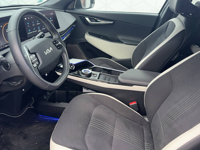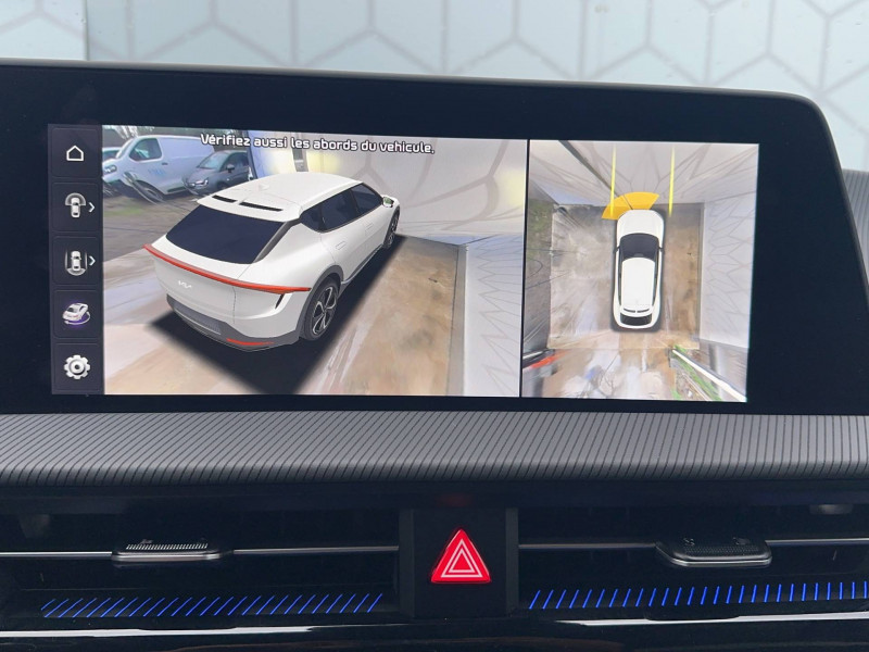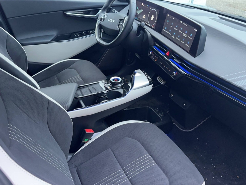 ABS avec répartiteur électronique de freinage (EBD) / Accoudoir central AR avec porte-gobelets intégrés / Affichage tête haute en réalité augmentée (AR HUD) / Aide au maintien dans la file (LKA) / Airbags frontaux, latéraux AV, rideaux et latéral central entre conducteur et passager AV / Alerte de vigilance du conducteur (DAW) / Allumage automatique des projecteurs en fonction de la luminosité / Assistance active à la conduite dans les embouteillages (LFA) / Assistance active à la conduite sur autoroute (HDA) / Boucliers AV/AR GT-line / Buse de ventilation pour la 2ème rangée / Câble de recharge pour prise domestique / Câble de recharge type 2 (T2-T2) 32 A / Caméra de recul avec lignes de guidage dynamiques / Clignotants AV et AR dynamiques / Combiné d'instrumentation 100 % digital 12.3'' / Connectique USB à l'AV de la console centrale / Connectique USB au dos des sièges conducteur et passager AV / E-Call: appel d'urgence automatique aux services de secours en cas d'accident avec géolocalisation du véhicule / Eclairage d'ambiance paramétrable / Eclairage intérieur à LED / Ecran tactile couleur 12,3'' avec compatibilité Android Auto et Apple CarPlay / Frein de parking électrique (EPB) avec fonction Autohold / Géolocalisation des bornes de recharge via la navigation embarquée et les services connectés Kia Connect Live / Ionity: Accès privilégié au réseau de recharge haute puissance Ionity pendant un an (IonityPower) / Kia Charge: service dédié de recharge en itinérance (application et carte de recharge) / Lève-vitres électriques, séquentielles et anti-pincement / Mémoire de position pour le siège conducteur (2 positions mémorisables) / Ouverture du coffre mains-libres (hauteur ajustable) / Ouverture et démarrage sans clé "Smart Key" / Palettes de commande pour la régénération d'énergie au volant / Pare-soleil avec miroir de courtoisie illuminé (conducteur et passager) / Pédalier finition aluminium / Plancher de coffre amovible / Poches aumonières au dos des sièges AV / Poignées de portes affleurantes automatiques / Porte-gobelets AV / Prise 12 V dans le coffre / Prise 12 V sur la console centrale / Prise Combo 2 (CCS) / Programmation de la recharge et de la température de l'habitacle / Projecteurs AV full LED matriciels avec gestion intelligente des feux de route / Reconnaissance des panneaux de limitation avec régulation de vitesse (ISLA) / Régulateur de vitesse adaptatif (SCC) avec fonction Stop&Go couplé au système de navigation (NSCC-C) / Rétroviseur intérieur électrochrome / Rétroviseurs extérieurs avec répétiteurs de clignotant LED Noir Brillant / Sellerie mixte suède/cuir artificiel noir avec contour des sièges blanc / Services télématiques Kia Connect offerts pendant 7 ans / Seuils de porte finition aluminium / Siège conducteur à réglages lombaires électriques / Système audio Premium Meridian / Système audio radio MP3 avec 6HP et commandes au volant / Système de fixation ISOFIX sur sièges AR latéraux / Système de freinage d'urgence autonome avec détection des piétons et des cyclistes (FCA) et fonction de croisement / Système de freinage multi collision (MCB) / Système de navigation avec cartographie Europe et services connectés Kia Connect Live offerts pendant 7 ans / Système de pré-conditionnement de la batterie assurant une température de batterie optimale pour la recharge rapide / Système de téléphonie mains-libres Bluetooth avec reconnaissance vocale et streaming audio / Trappe à ski dans la banquette AR / Verrouillage automatique des portes asservi à la vitesse / Volant chauffant