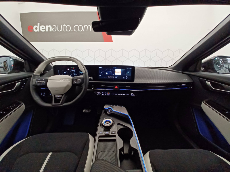 Abonnements Kia Charge Plus et IONITY Power offerts pendant 12 mois / ABS avec répartiteur électronique de freinage (EBD) / Accoudoir central AR avec porte-gobelets intégrés / Aide au maintien dans la file (LKA) / Airbags frontaux, latéraux AV, rideaux et latéral central entre conducteur et passager AV / Alerte de vigilance du conducteur (DAW) / Allumage automatique des projecteurs en fonction de la luminosité / Assistance active à la conduite dans les embouteillages (LFA) / Assistance active à la conduite sur autoroute (HDA) / Assistance active au stationnement à distance avec parking en épi (RSPA 2.0) / Bandeau lumineux AV / Bandeau lumineux LED AR / Boîte de vitesses mono rapport à réducteur / Boucliers AV/AR GT-line / Bouton d'appel d'urgence eCall du véhicule / Buse de ventilation pour la 2ème rangée / Câble de recharge pour prise domestique 230V / Câble de recharge type 2 (T2-T2) 32 A / Caméra de détection de vigilance du conducteur (ICC) / Carte Kia Charge (accès gratuit au service de recharge et à l'application) / Chargeur embarqué triphasé de 11 kW / Clé digitale 2.0 / Clé digitale et reconnaissance biométrique / Clignotants AV et AR dynamiques / Combiné d'instrumentation 100 % digital 12.3'' / Connectique USB-C à l'AV et à l'AR / Console centrale flottante avec accoudoir / Contrôle de traction (TCS) / Double écran panoramique 12,3'' avec navigation intégrée compatible Apple CarPlay / Android Auto sans fil / Eclairage d'ambiance à LED personnalisable / Eclairage intérieur à LED / Fonction "Plug & Charge" (selon compatibilité avec les opérateurs de bornes de recharge) / Frein de parking électrique (EPB) avec fonction Autohold / Géolocalisation des bornes de recharge via la navigation embarquée et les services connectés Kia Connect Live / Hayon électrique à ouverture mains-libres / Ionity: Accès privilégié au réseau de recharge haute puissance Ionity pendant un an (IonityPower) / Lève-vitres électriques, séquentielles et anti-pincement / Moniteur vision panoramique 360° (SVM) / Ouverture et démarrage sans clé Smart Key / Palettes de commande pour la régénération d'énergie au volant / Pare-soleil avec miroir de courtoisie illuminé (conducteur et passager) / Pédalier finition aluminium / Plancher de coffre amovible / Planificateur intelligent d'itinéraire / Plug & Charge - selon compatibilité avec les opérateurs de bornes de recharge / Poche aumonière au dos du siège passager AV / Poignées de portes affleurantes automatiques / Porte-gobelets AV / Prise 12 V à l'AR de la console centrale et dans le coffre / Prise Combo 2 (CCS) / Programmation de la recharge et de la température de l'habitacle / Projecteurs AV full LED matriciels avec gestion intelligente des feux de route / Radars de parking AV/AR / Reconnaissance biométrique / Reconnaissance des panneaux de signalisation avec régulation active de la vitesse (ISLA) / Régulateur de vitesse adaptatif couplé au système de navigation (NSCC-C) et avec fonction Stop & Go / Rétroviseur intérieur électrochromatique (ECM) / Rétroviseurs extérieurs avec répétiteurs de clignotant LED Noir Brillant / Sellerie mixte Suède/matière synthétique noir avec contour des sièges blanc / Seuils de porte finition aluminium / Siège conducteur à mémoires de position (2 positions mémorisables) / Sièges AV à réglages lombaire électrique / Sièges AV premium avec fonction détente / Solution de recharge pour prise domestique 230V (adaptateur pour câble T2-T2) / Solution de recharge pour prise domestique "Mobility Dock" / Système anticollision avec affichage des angles morts (BVM) / Système anti-collision avec détection des angles morts (BCA) / Système audio MP3 radio DAB avec 6 HP et commandes au volant / Système audio premium Meridian avec 14 HP et un amplificateur externe / Système de chauffage de la batterie / Système de détection de trafic AR avec fonction freinage (RCCA) / Système de détection de trafic AR avec fonction freinage voiture/piéton (PCA) / Système de fixation ISOFIX sur sièges AR latéraux / Système de freinage à récupération d'énergie avec fonction "i-Pedal" / Système de freinage d'urgence autonome avec détection des piétons et des cyclistes et fonction d'intersection (FCA 1.5) / Système de freinage multi collision (MCB) / Système de gestion automatique des feux de route (HBA) / Système de navigation avec cartographie Europe, services connectés Kia Connect Live et services télématiques Kia Connect offerts pendant 7 ans / Système de pré-conditionnement de la batterie (assure une température optimale pour la charge rapide par temps chaud ou froid) / Système de sécurité de sortie du véhicule (SEA) / Système de téléphonie mains-libres Bluetooth avec reconnaissance vocale et fonction streaming audio / Système Kia Connect - services télématiques offerts pendant 7 ans / Trappe à ski dans la banquette AR / Verrouillage automatique des portes asservi à la vitesse / Volant à réglage électrique et à mémoire / Volant chauffant / Volant gainé cuir trois branches
